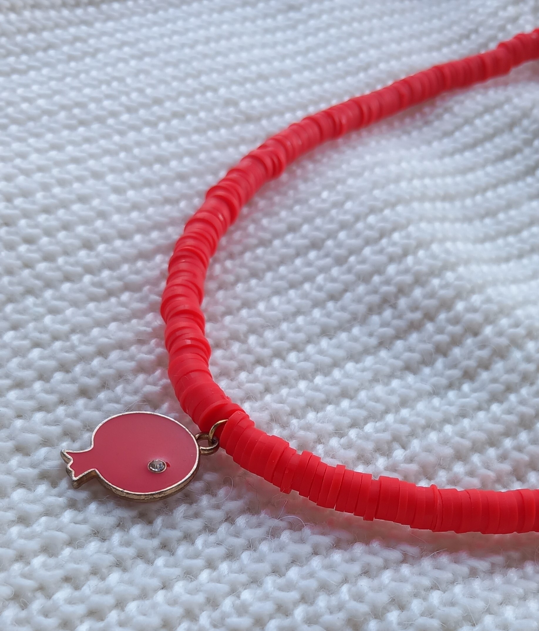 گردنبند یلدایی زنانه فیمو قرمز با پلاک انار