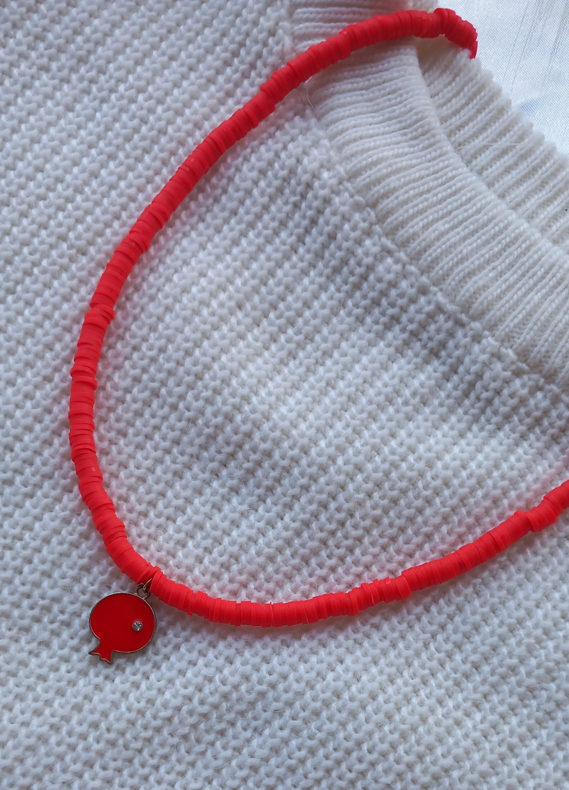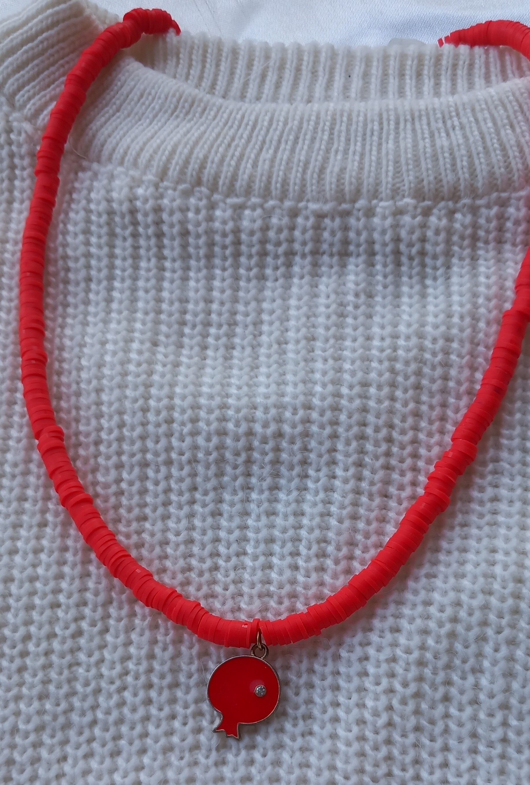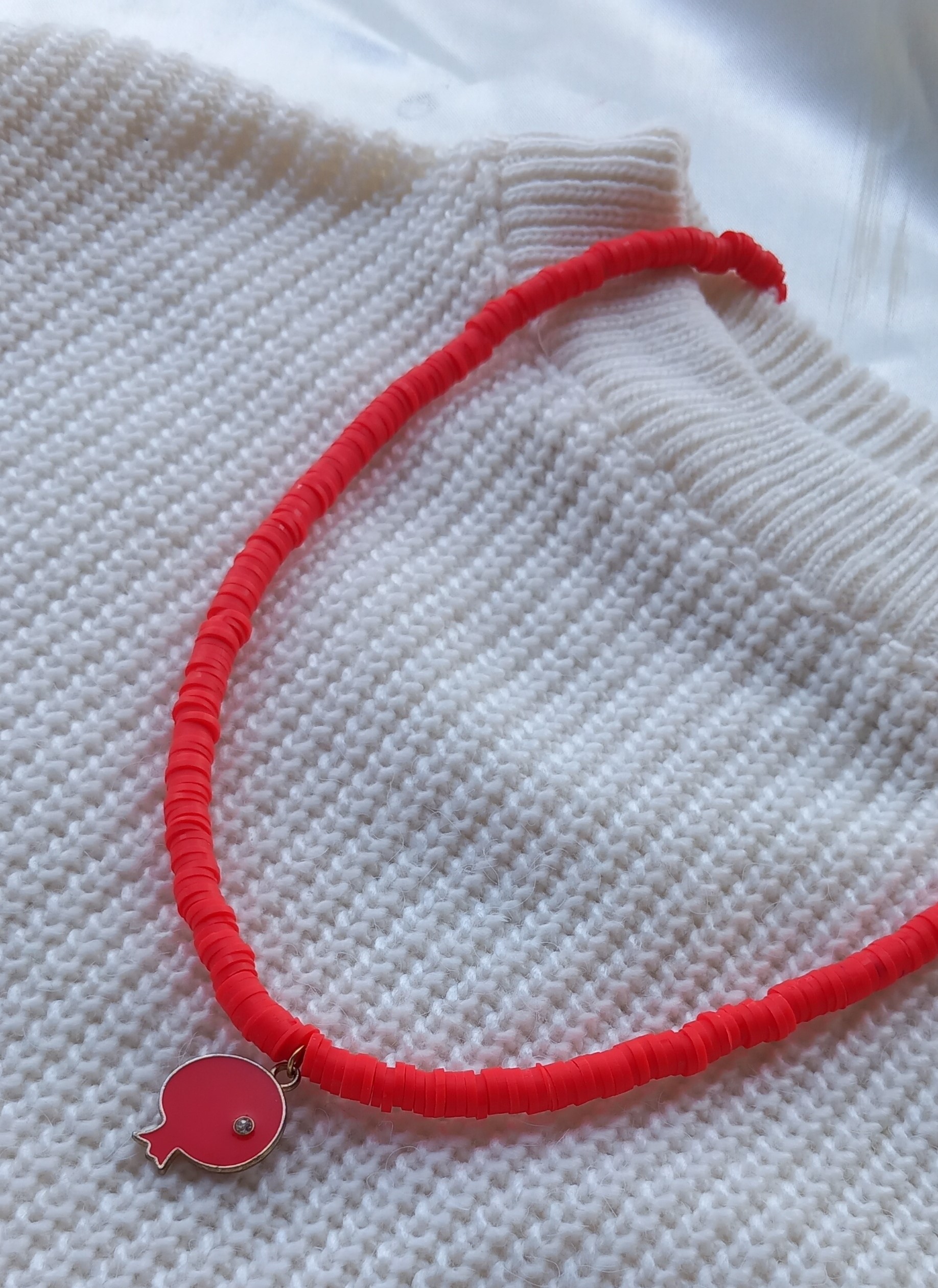 بعد از مراسمات شب یلدا میتوانید پلاک انار را جدا کنید و از گردنبند فیمو قرمز ساده در استایل های روزانه استفاده نمایید.