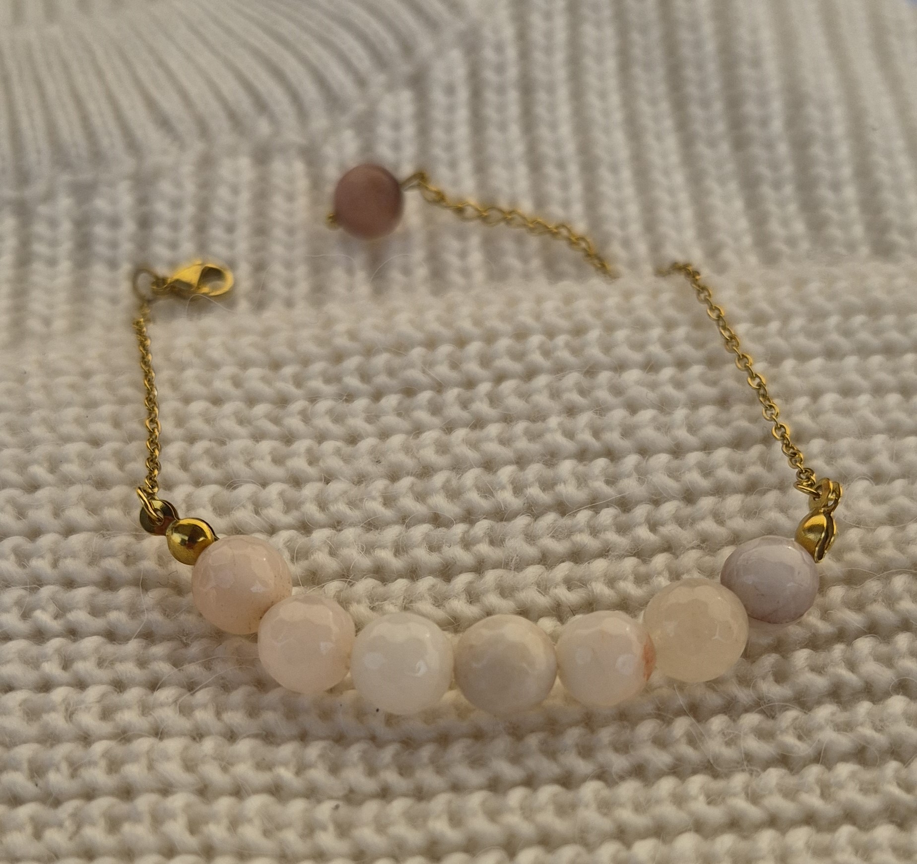 دستبند زنانه عقیق طبیعی با زنجیر استیل رنگ ثابت