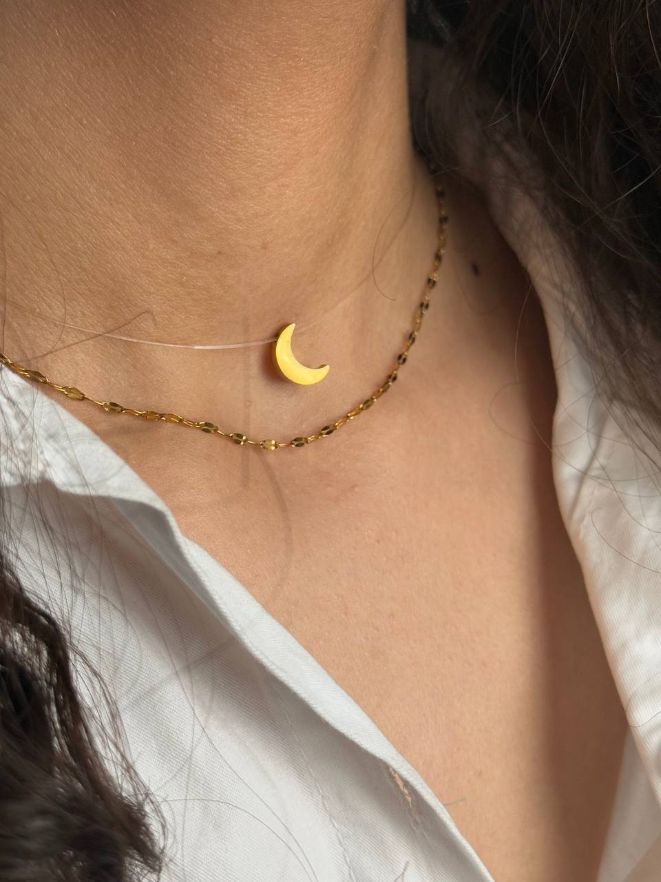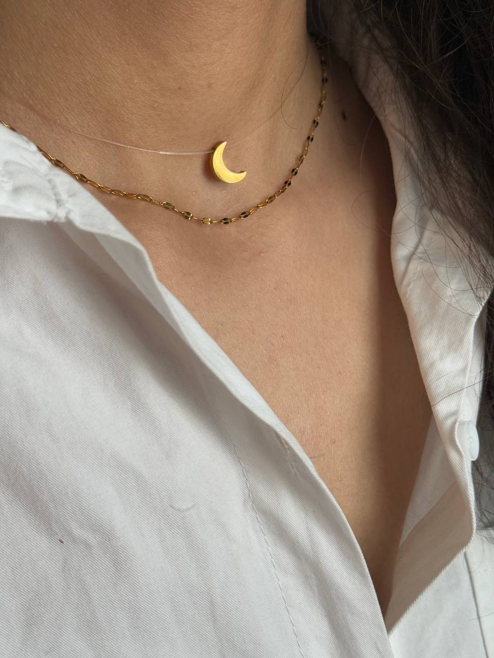 گردنبند زنانه ماه استیل طلایی با نخ نامرعی