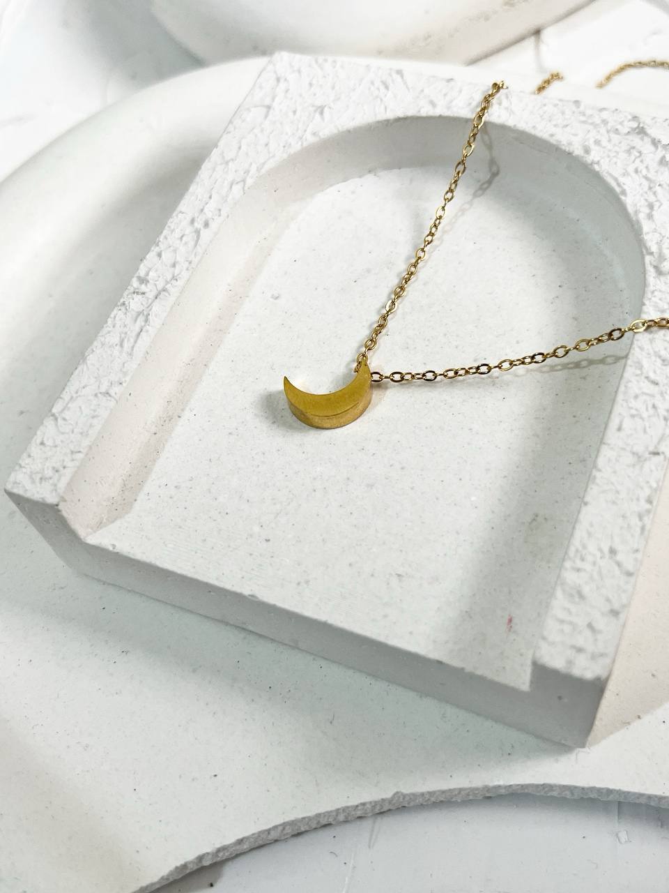 3D Moon Stainless Steel Necklace – Colorfast, Available in Gold & Silver
