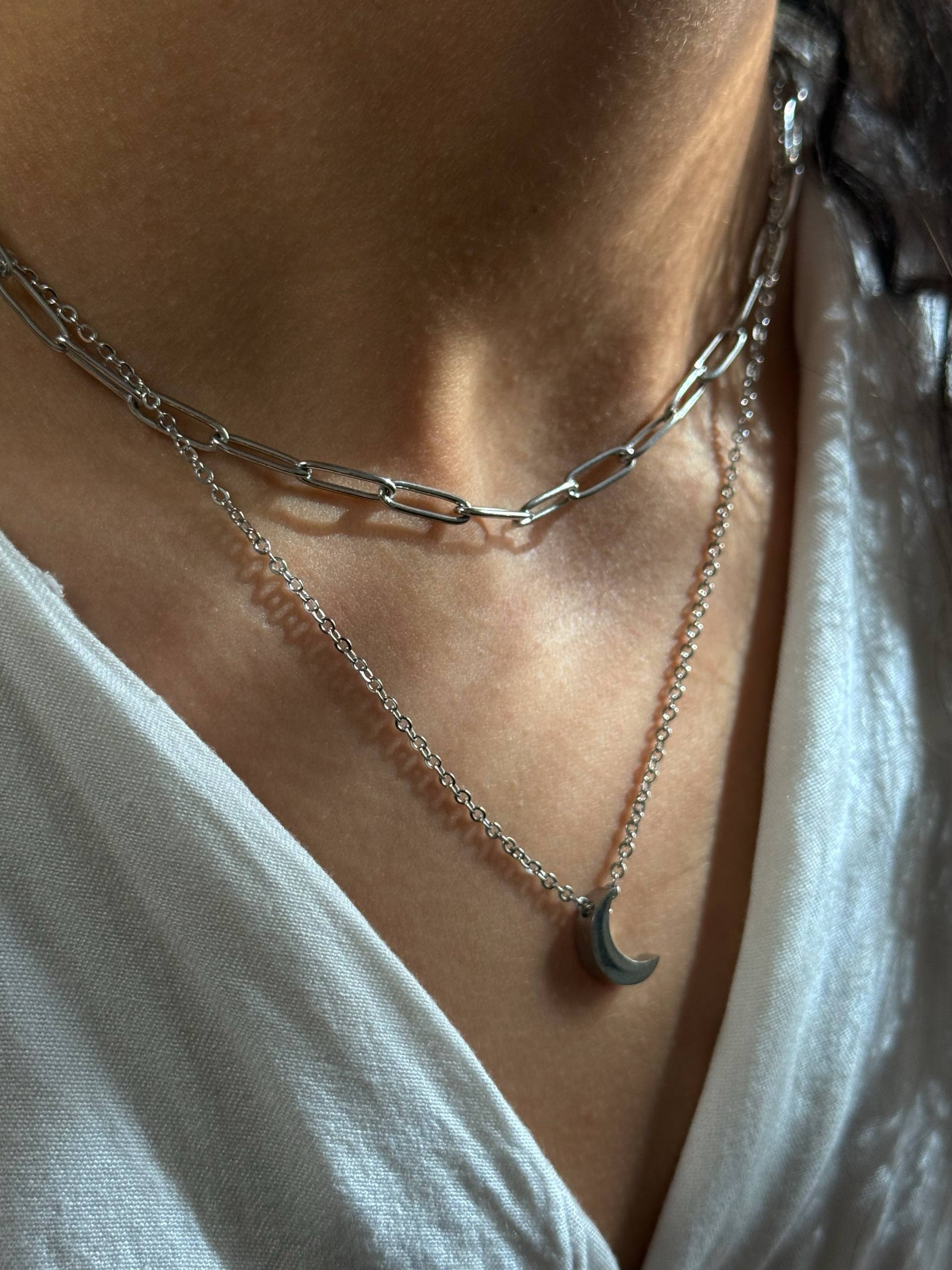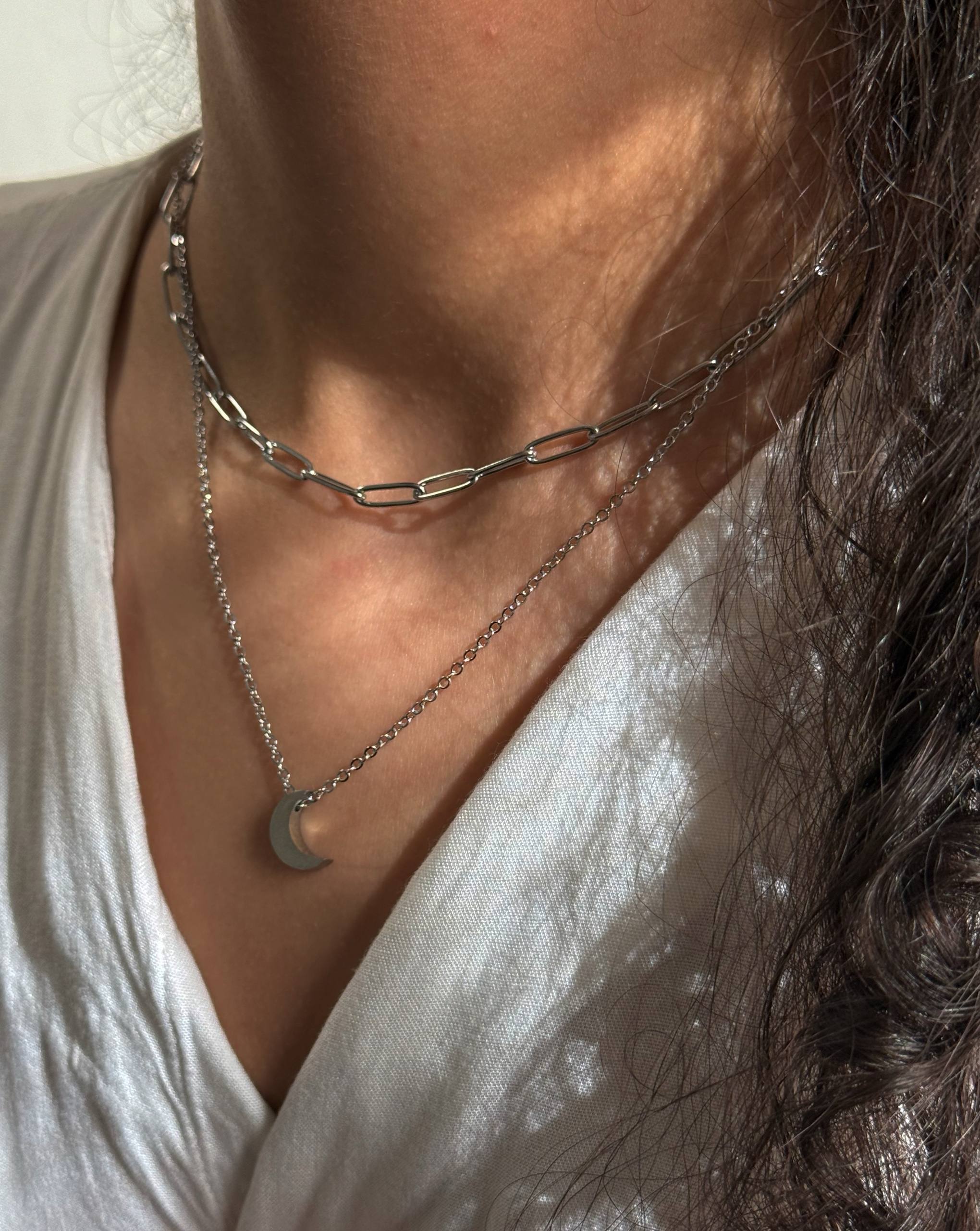 گردنبند ماه نقره‌ای با زنجیر استیل