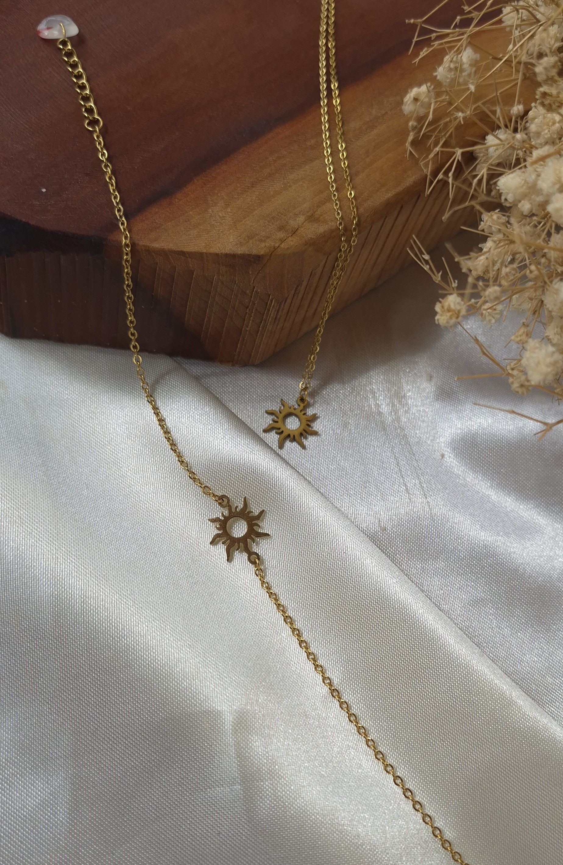 درخشش ملایم طلایی و فرم خورشیدی پلاک، این ست را به انتخابی عالی برای استفاده روزانه، مهمانیها و استایلهای مینیمال تبدیل کرده است. جنس استیل باکیفیت و آبکاری حرفهای باعث شده این محصول کاملاً رنگ ثابت باشد و در برابر تعریق، رطوبت و استفاده مداوم تغییر رنگ ندهد.