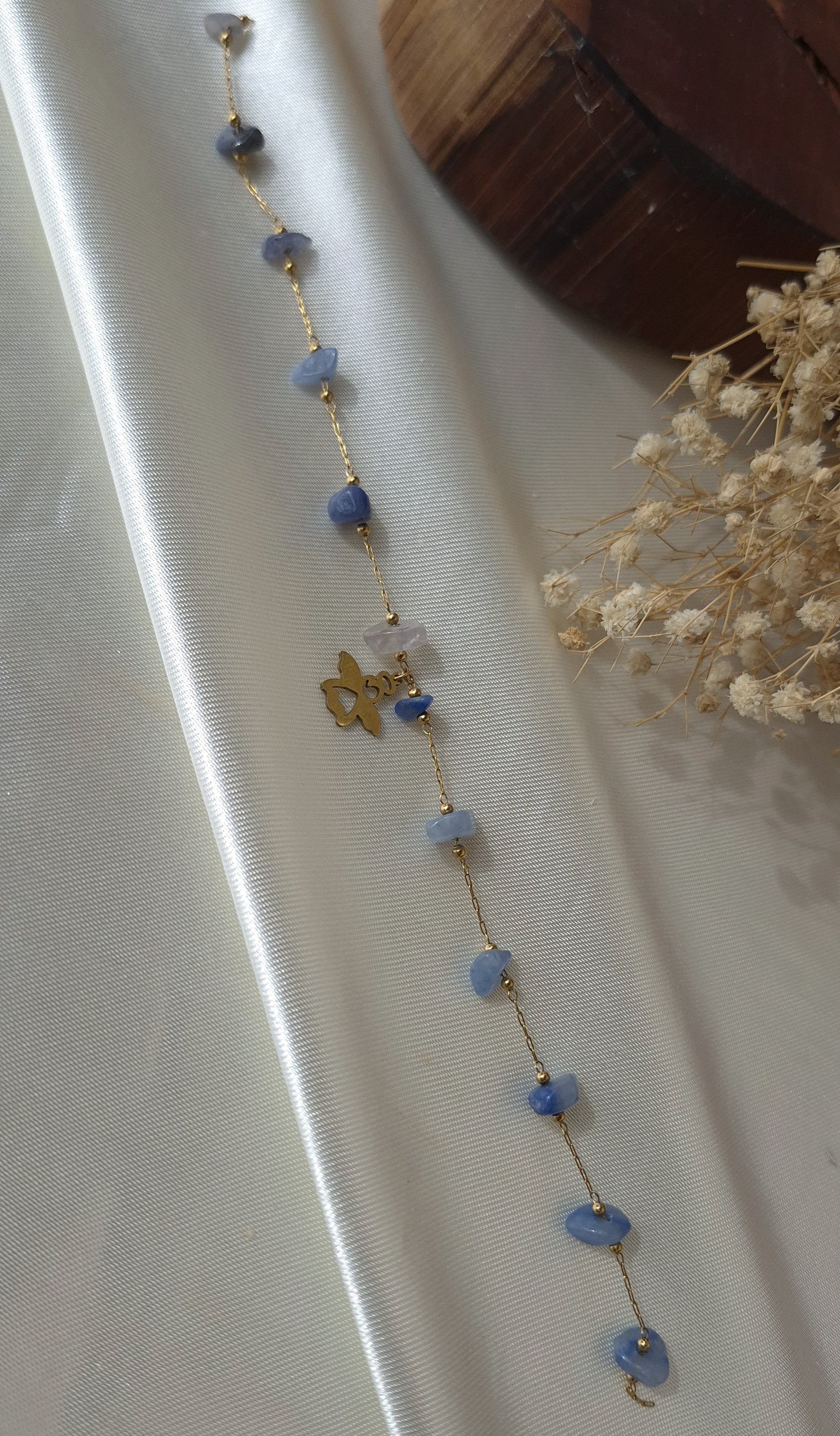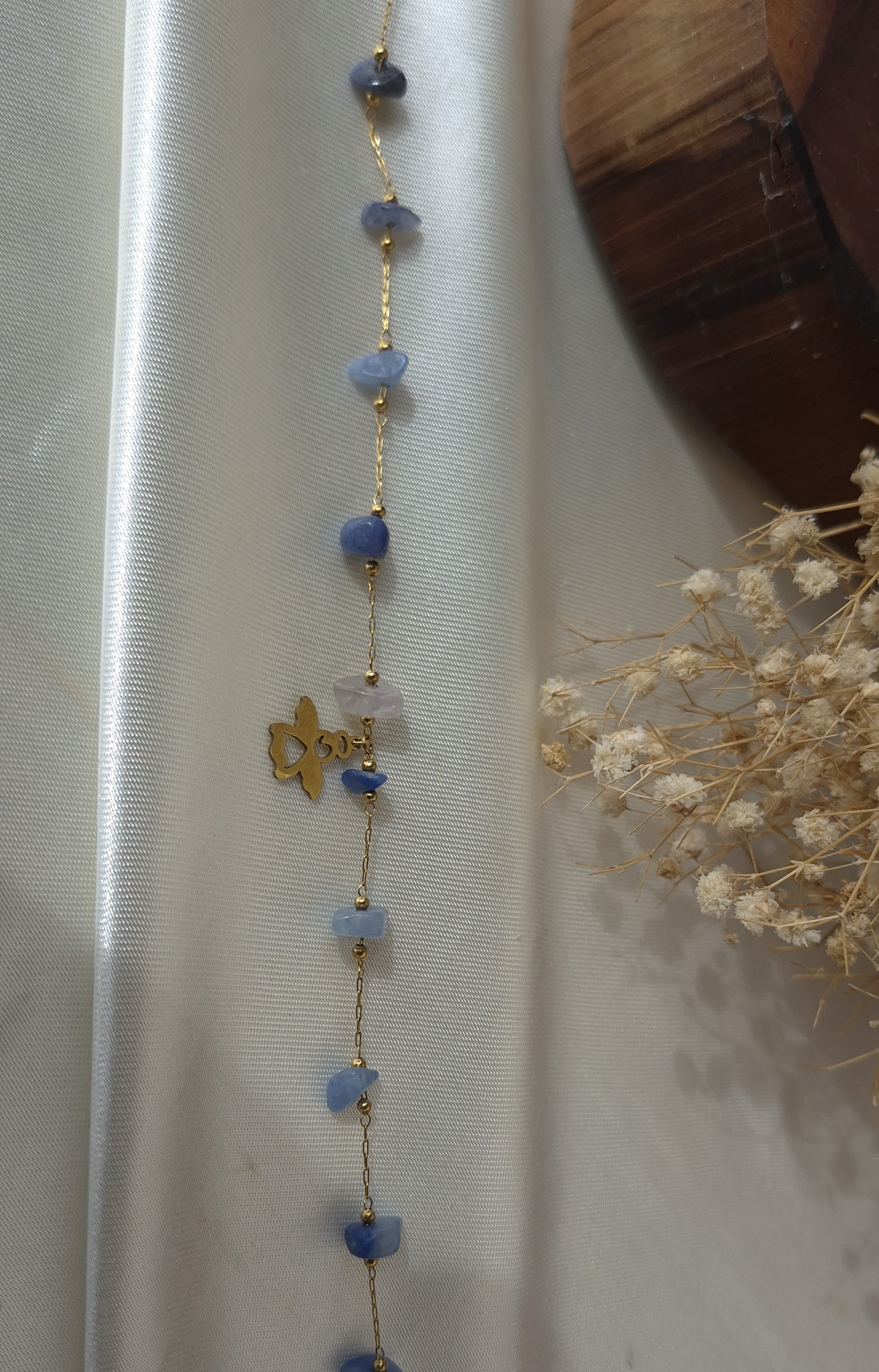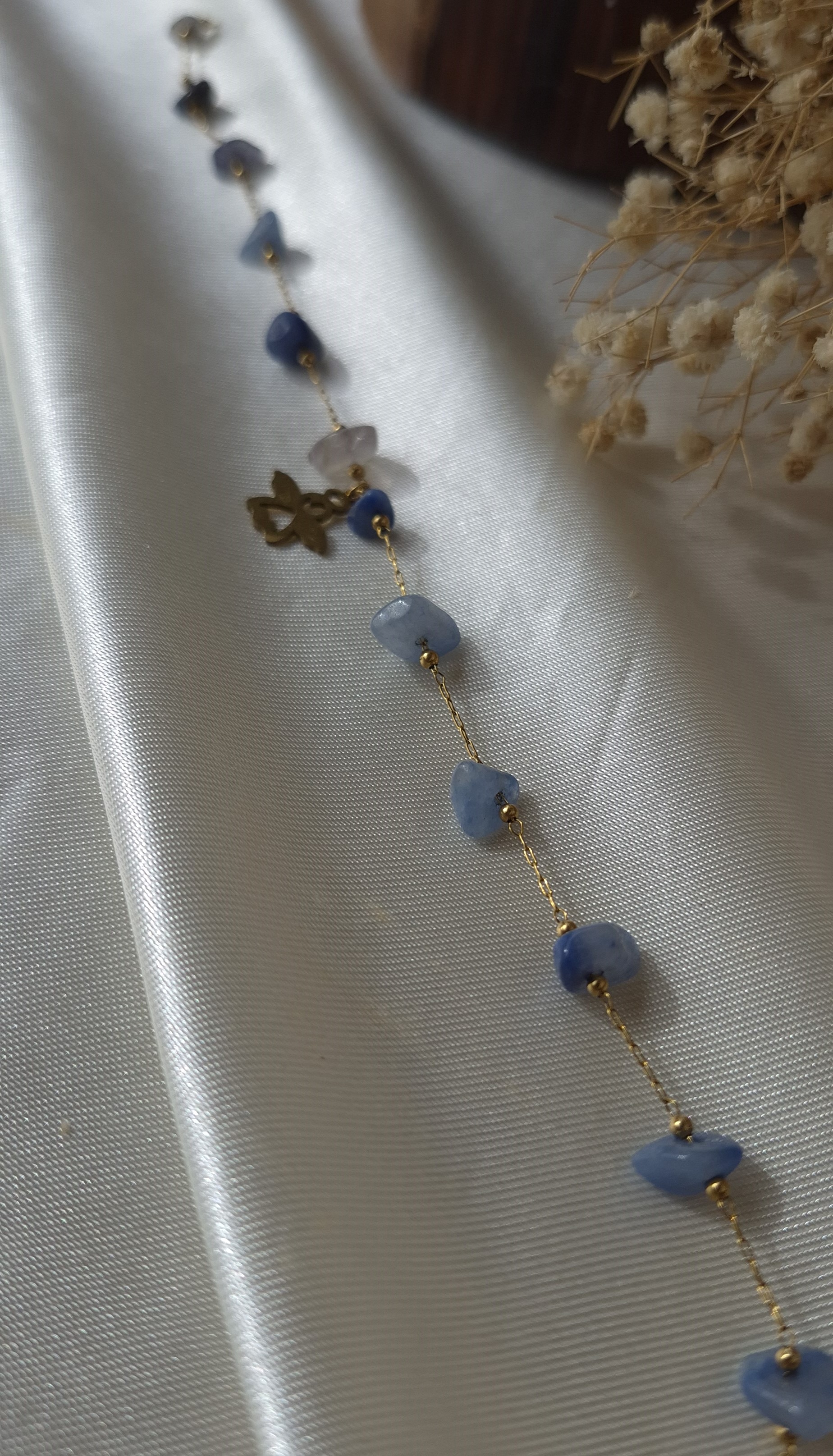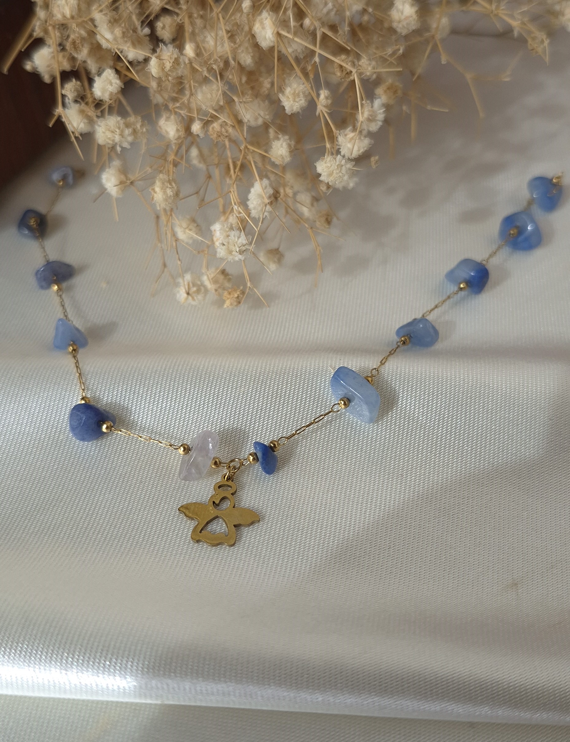 💎 دارای چندین سنگ طبیعی سودالیت آبی بین زنجیر و یک پلاک فرشته استیل