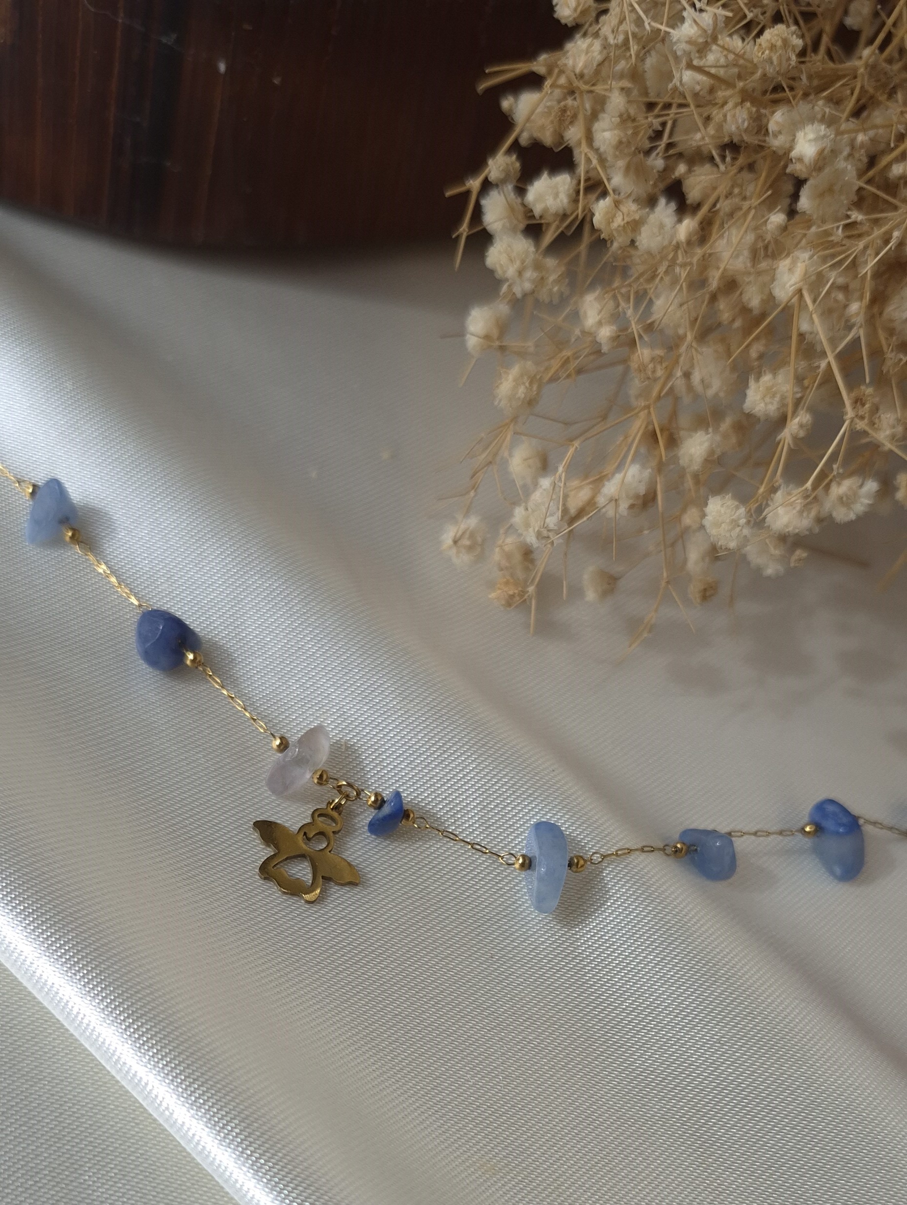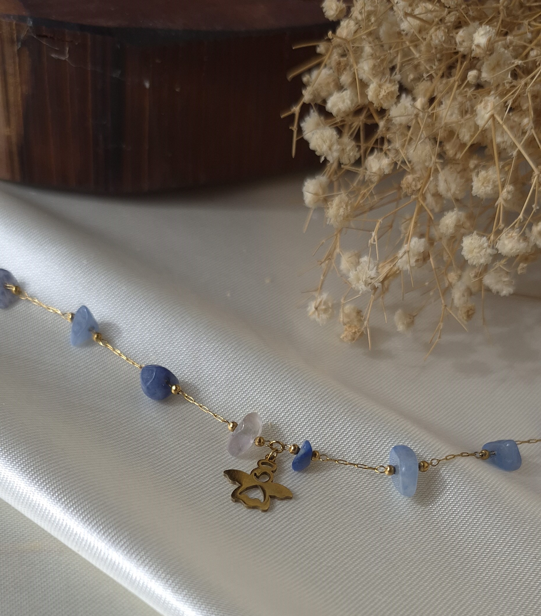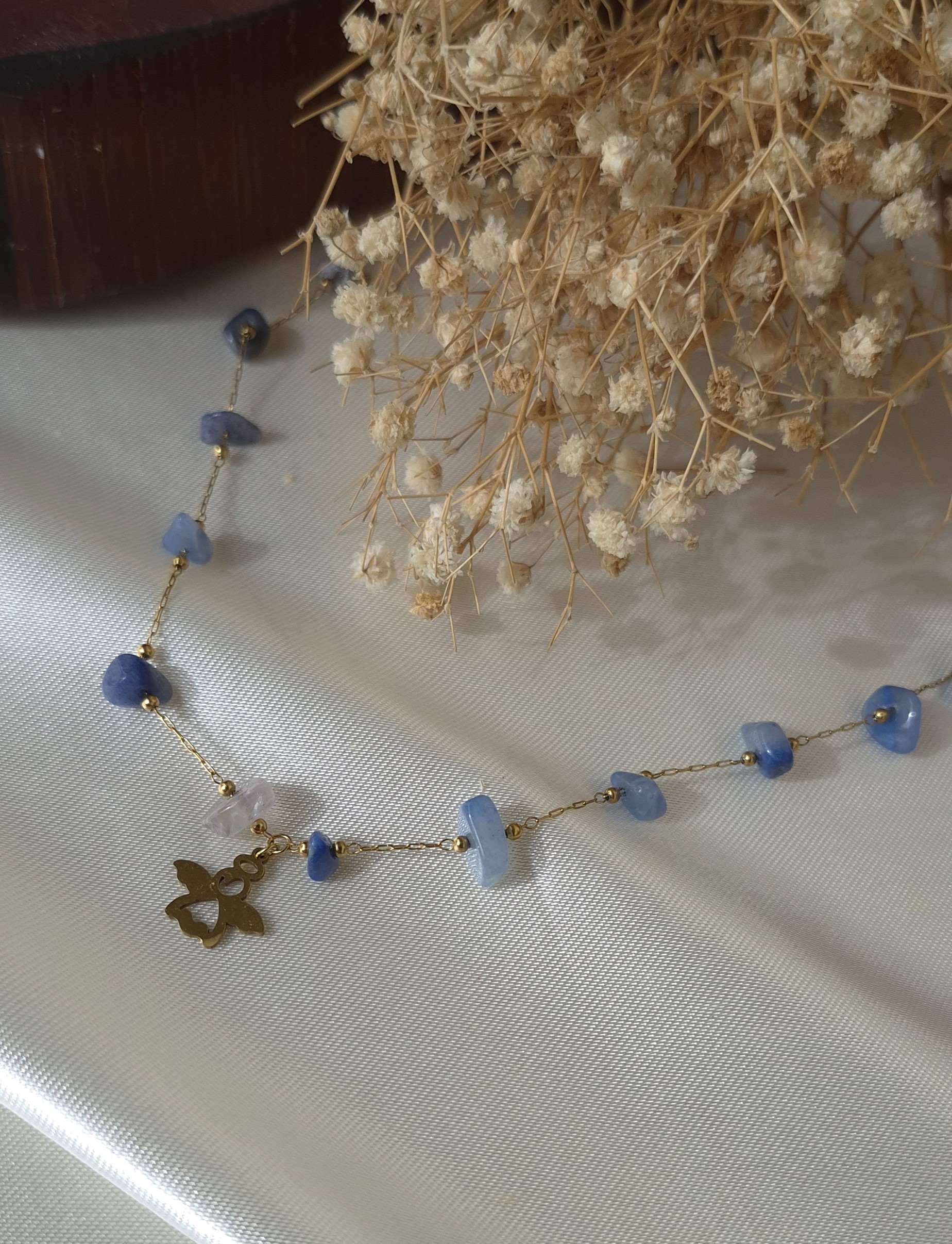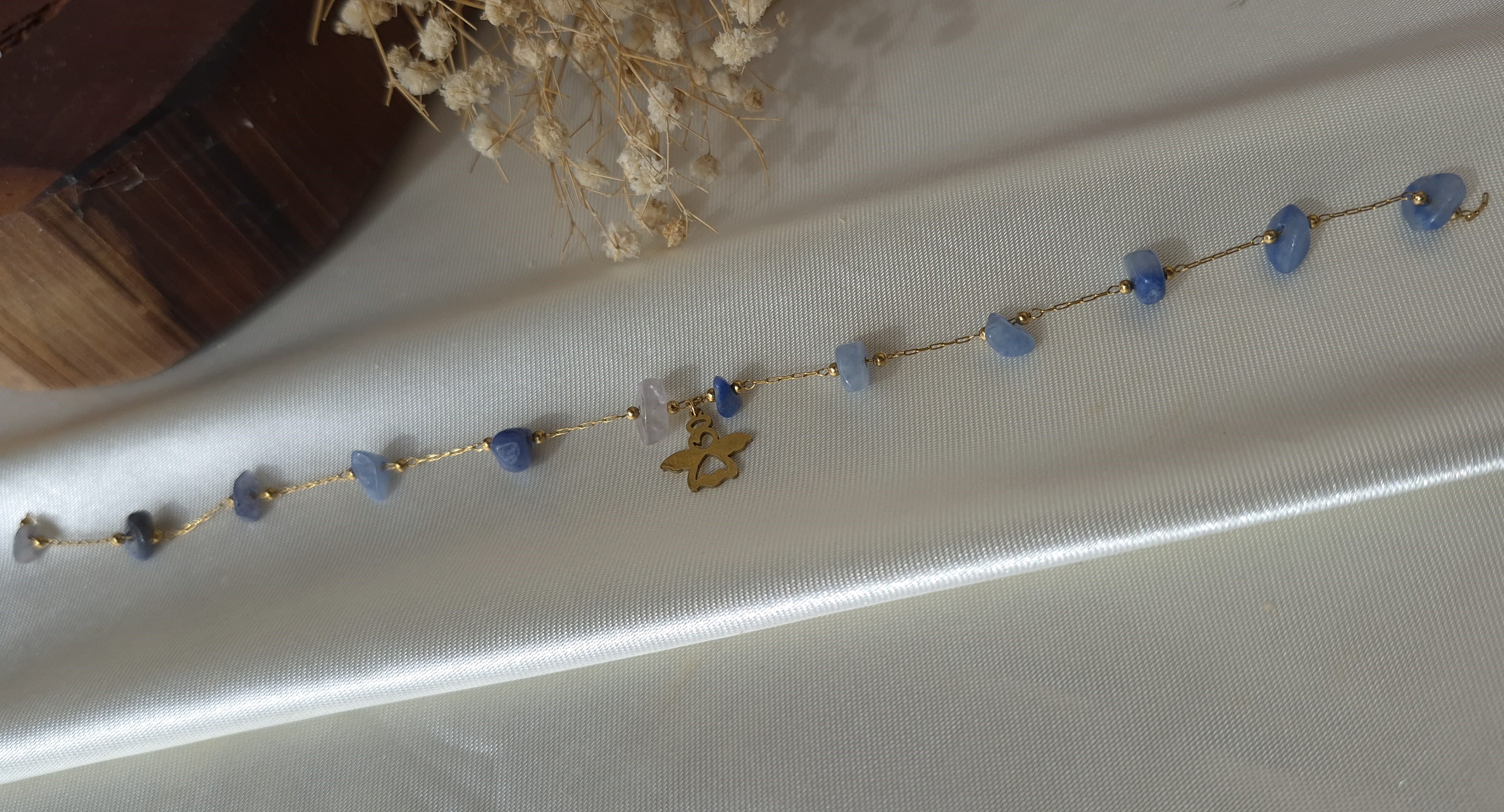 💎 دارای چندین سنگ طبیعی سودالیت آبی بین زنجیر و یک پلاک فرشته استیل