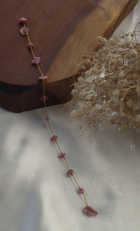 این دستبند زنانه با طراحی زنجیری استیل رنگ ثابت و ترکیب چندین صدف طبیعی رنگ صورتی در بخش میانی، جلوهای خاص، لطیف و بسیار چشمنواز دارد. رنگ صورتی ملایم صدفها و بافت طبیعی آنها، حس لطافت و زیبایی را به استایل شما اضافه کرده و این مدل را به یک اکسسوری متفاوت و منحصربهفرد تبدیل کرده است.
