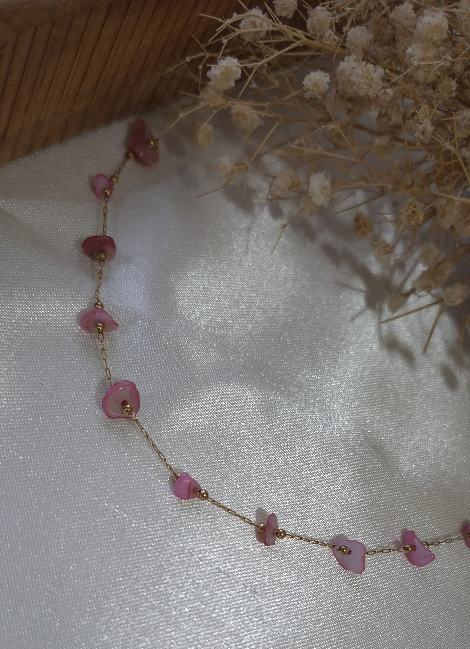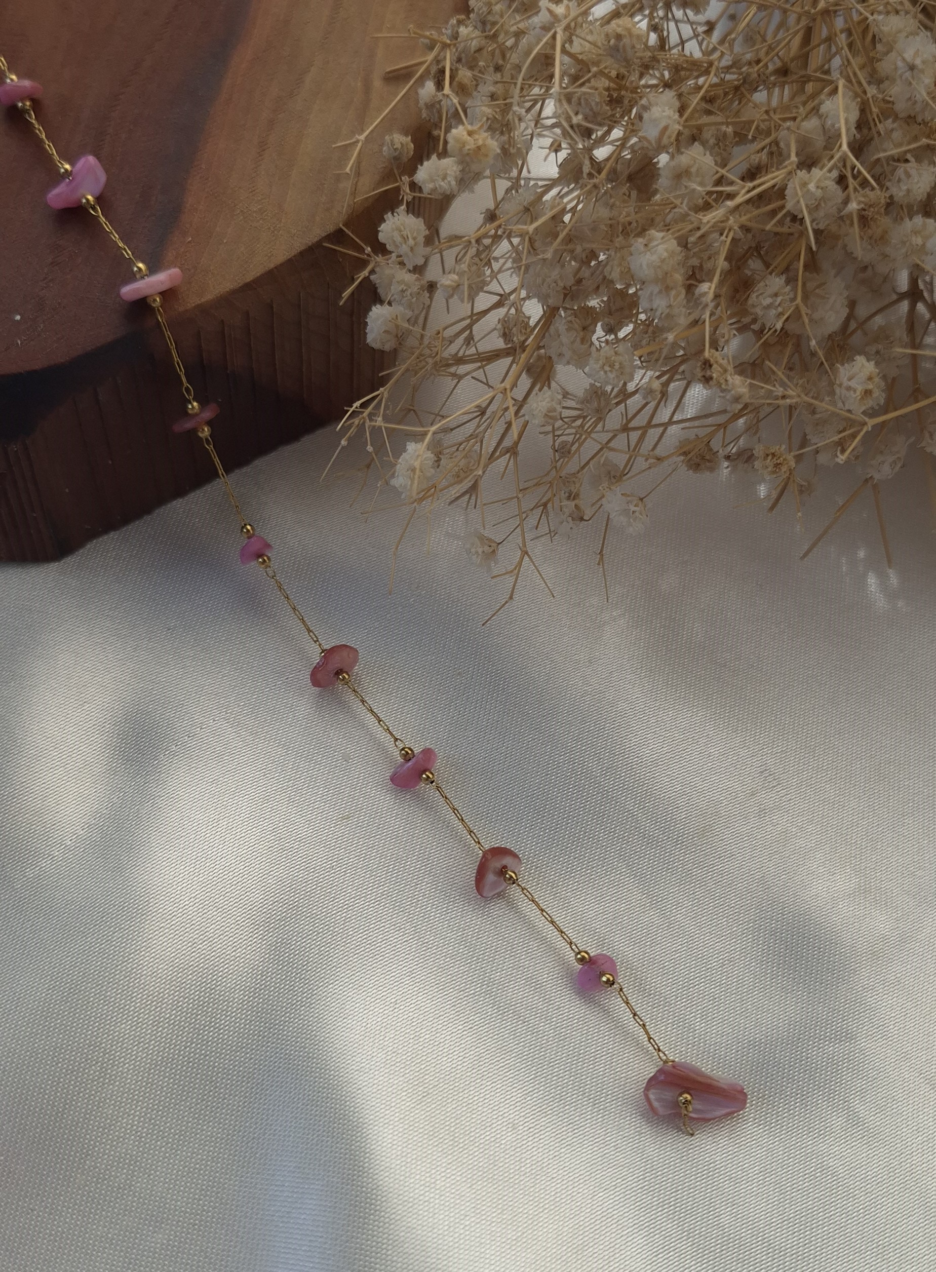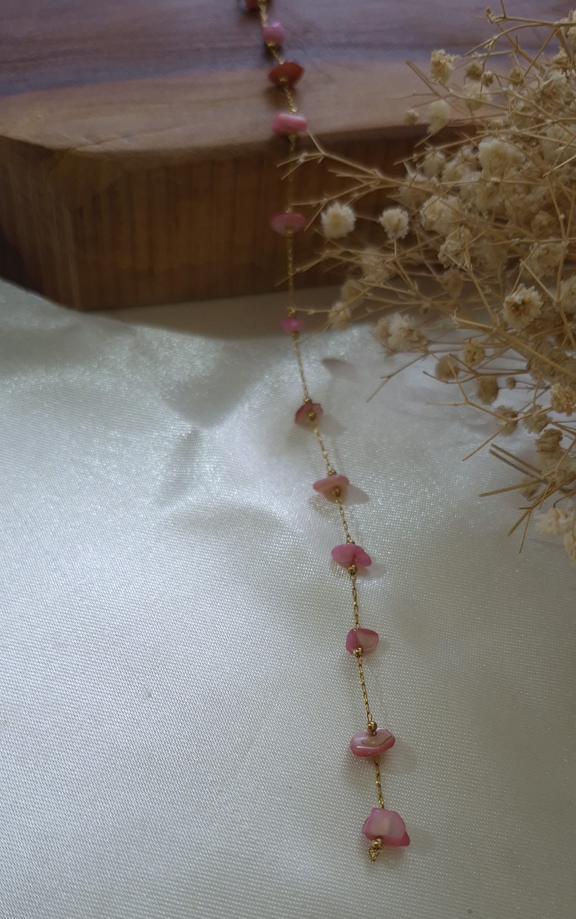 💎 دارای چندین صدف طبیعی رنگ صورتی بین زنجیر