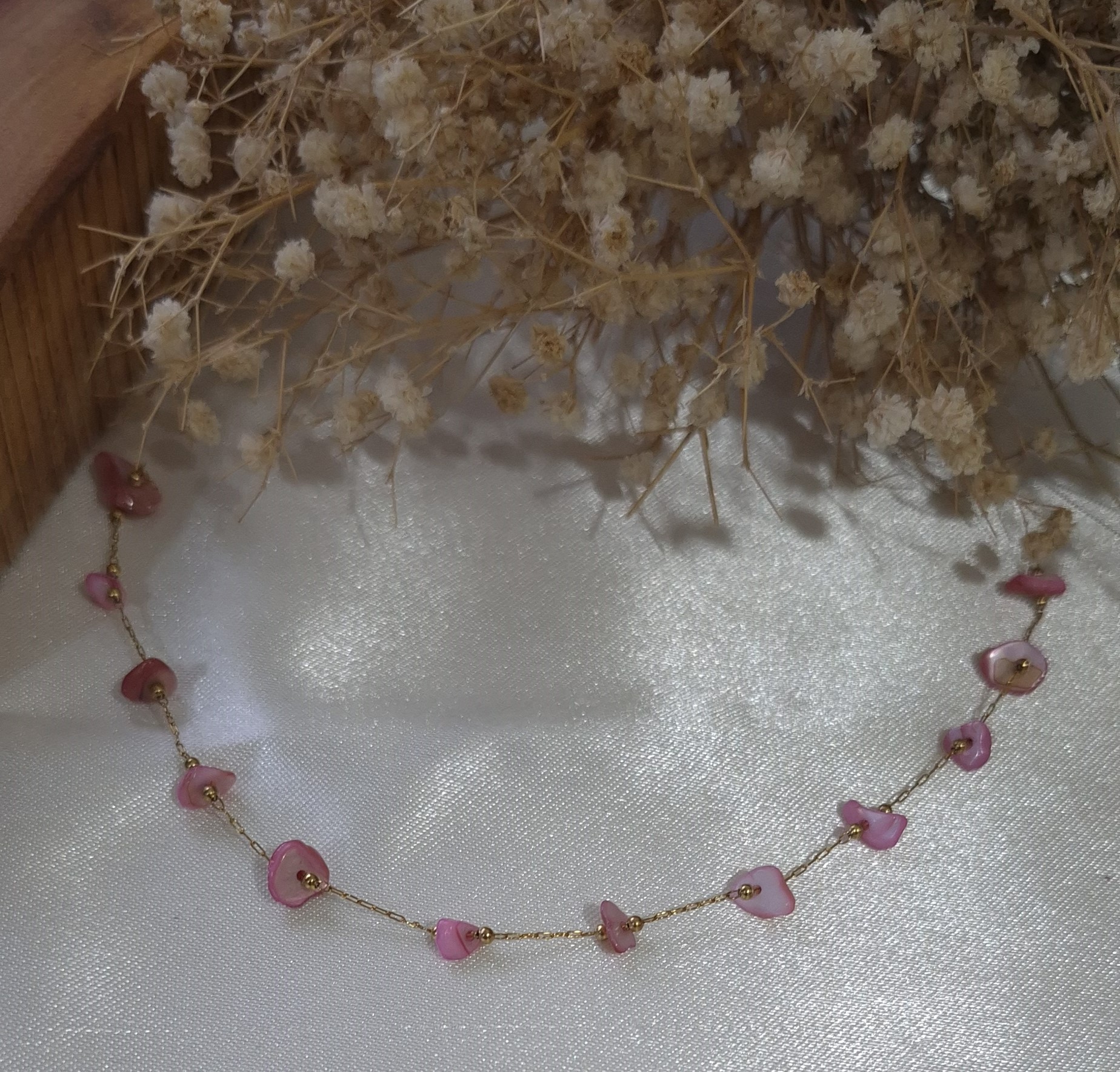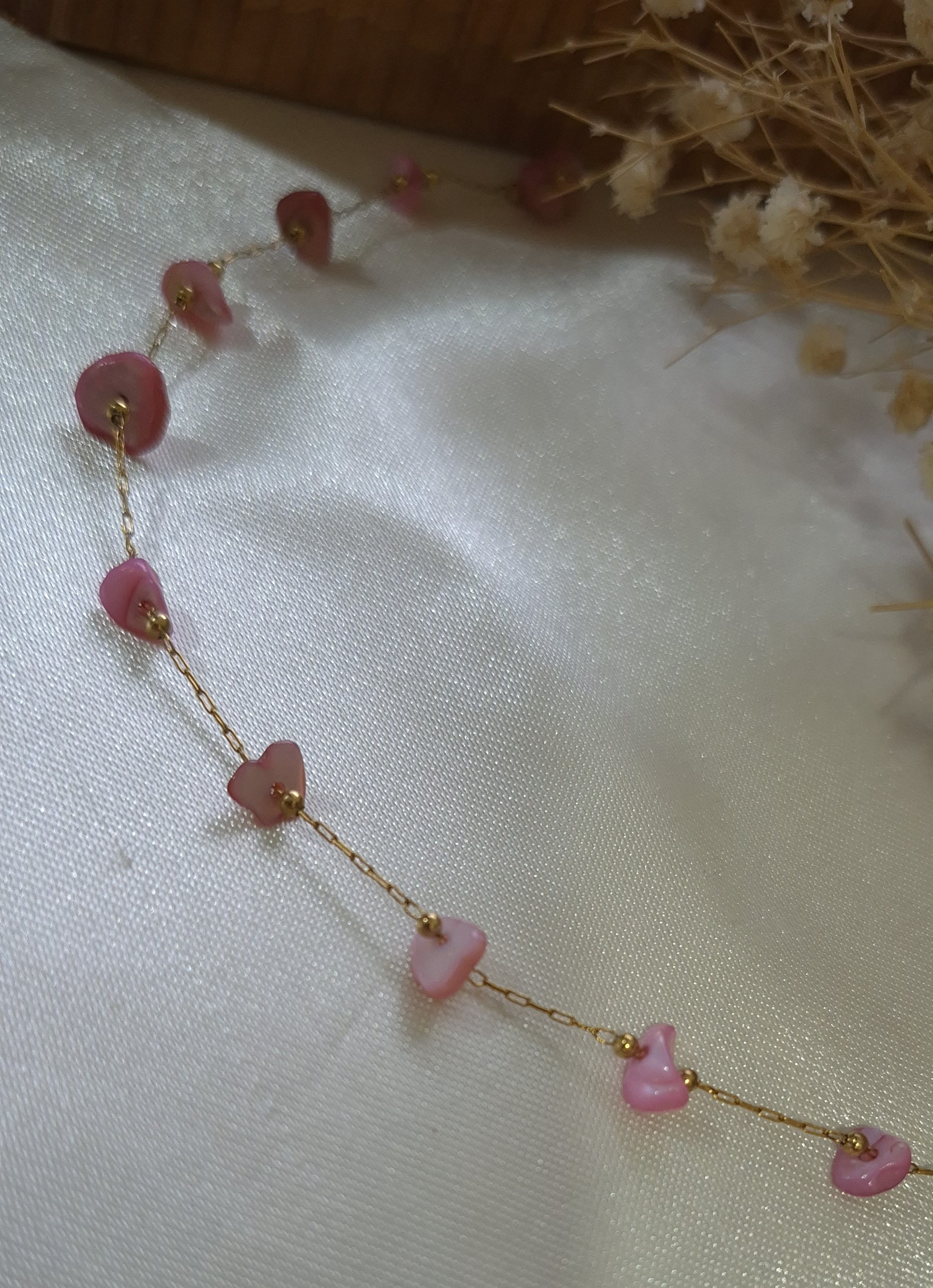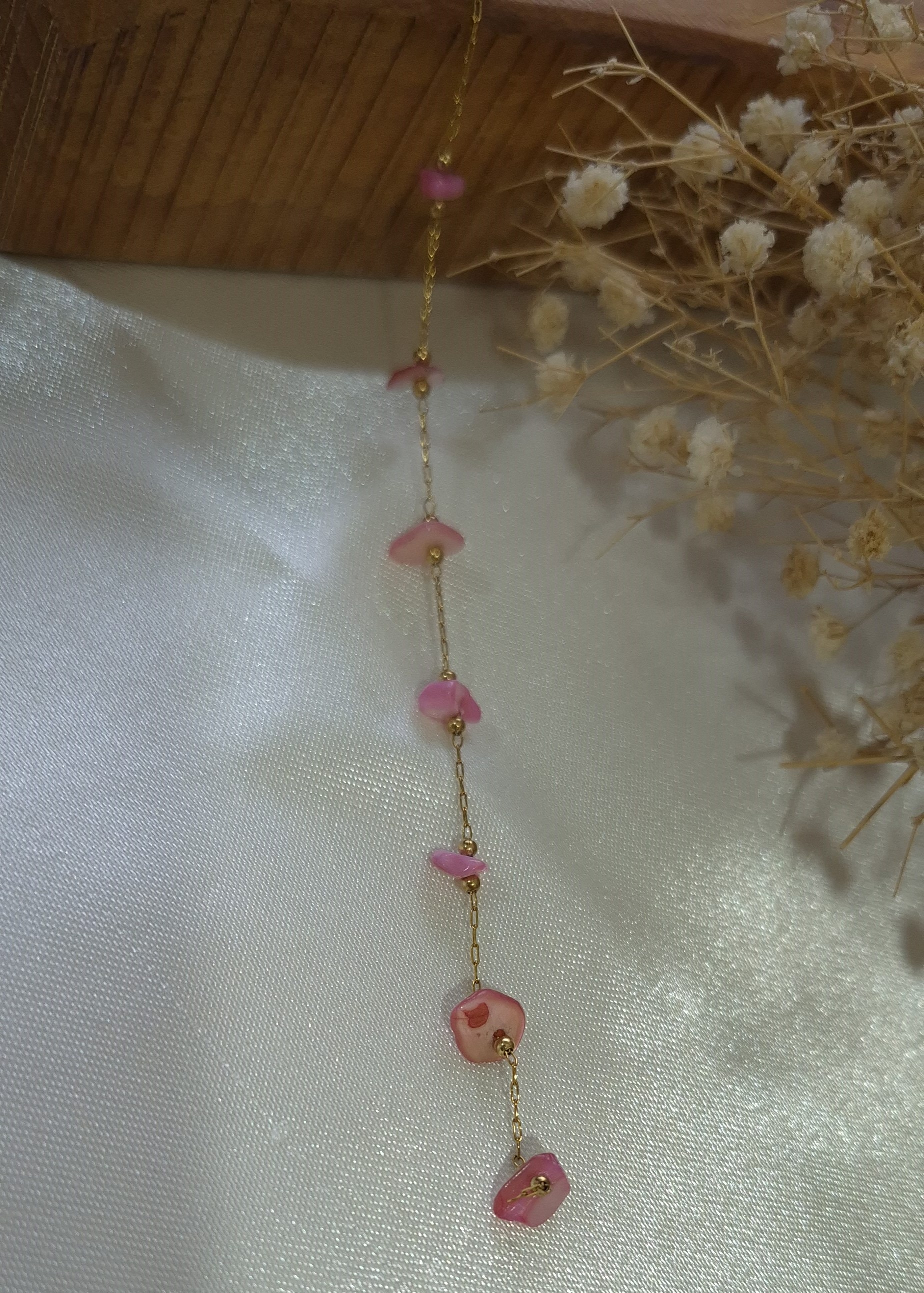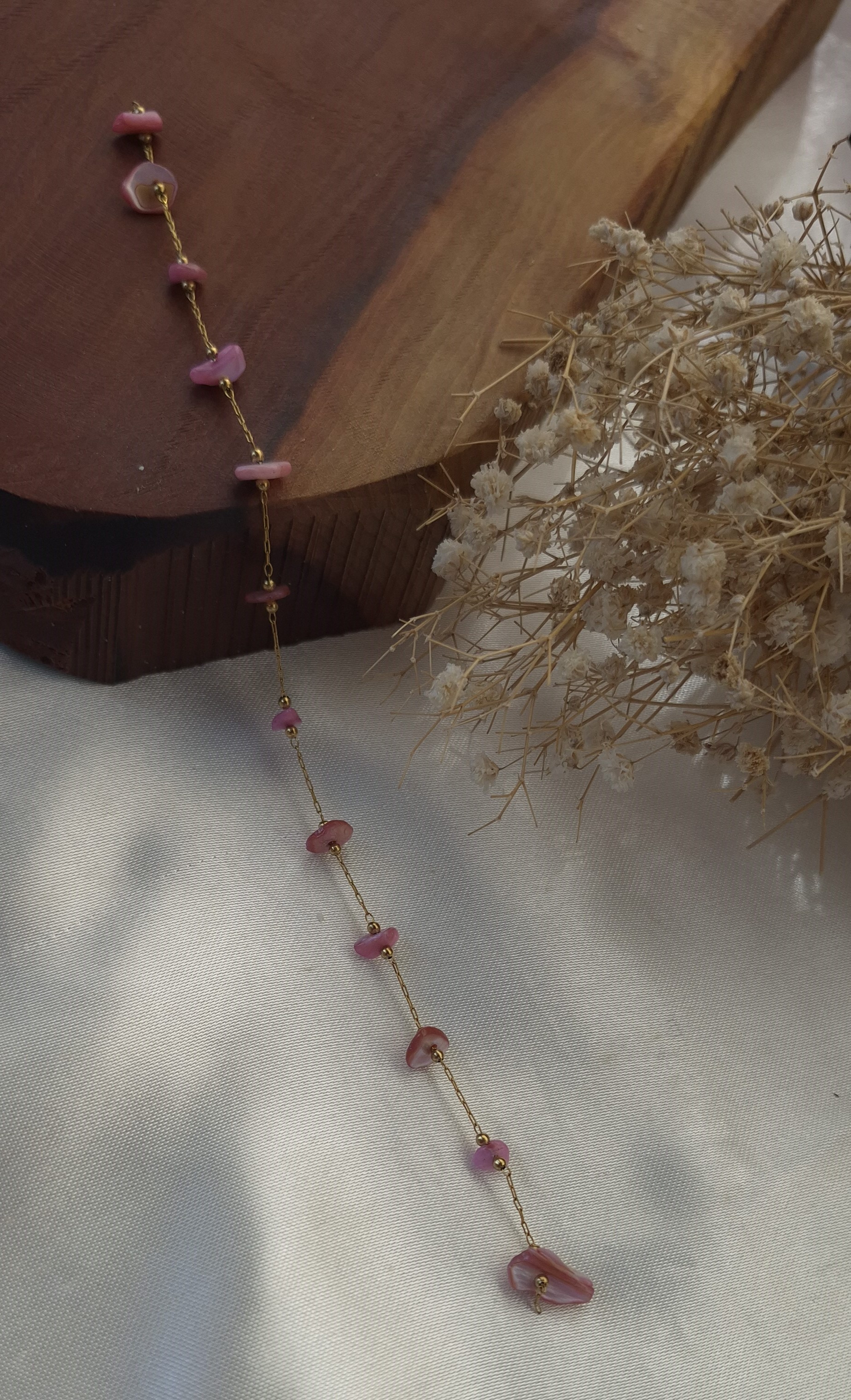 💎 دارای چندین صدف طبیعی رنگ صورتی بین زنجیر