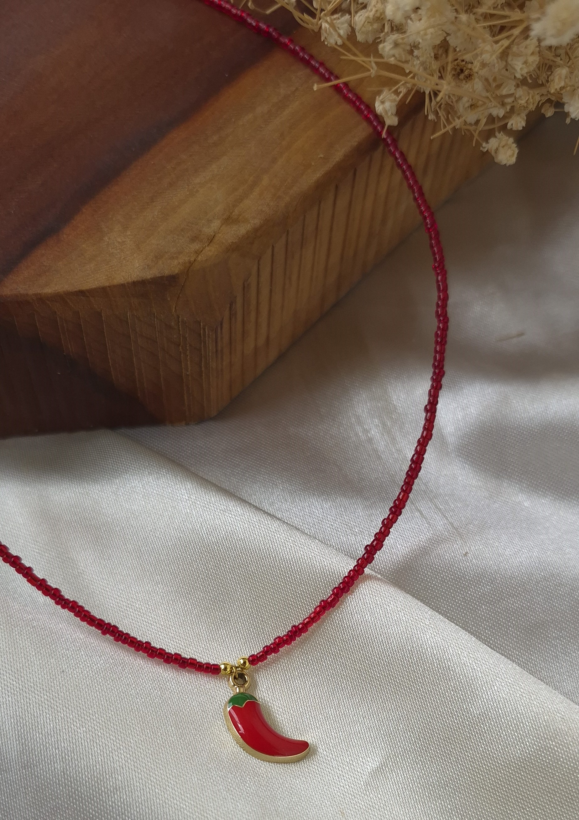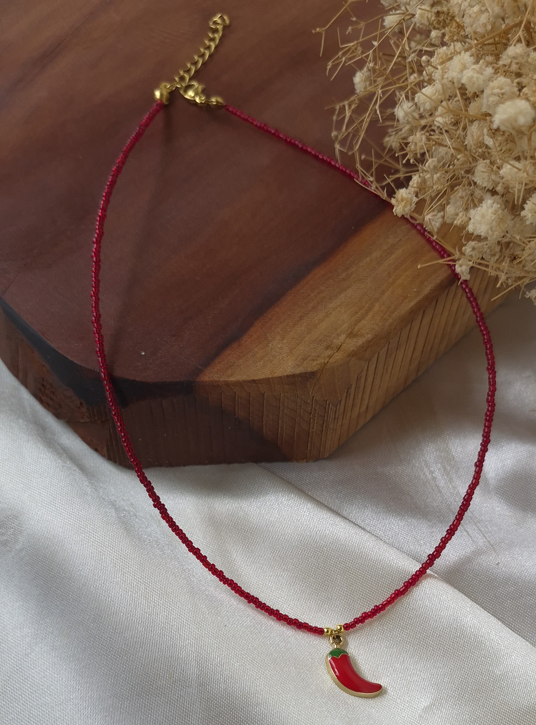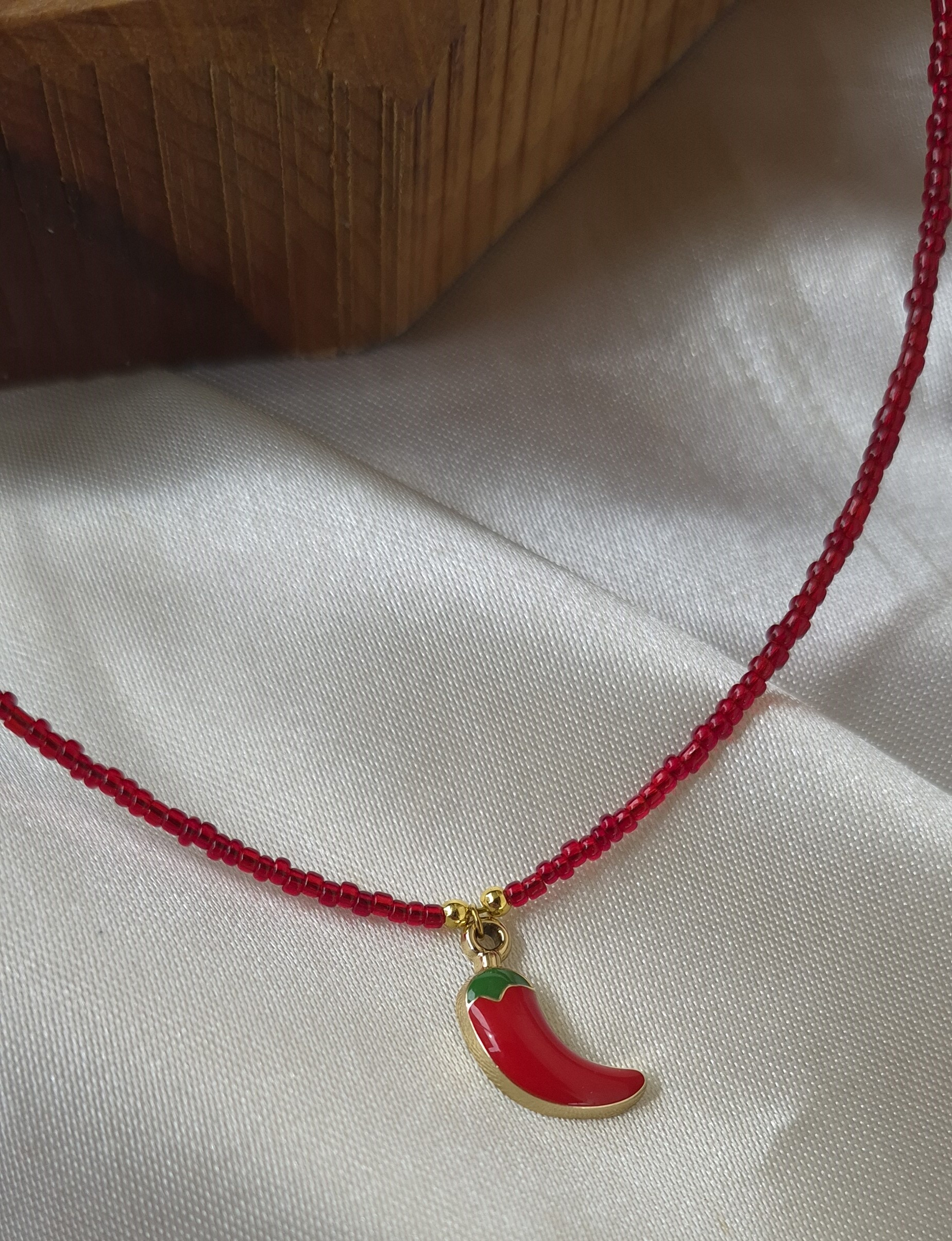 💖این گردنبند دخترانه و فانتزی فلفل با مهرههای قرمز و پلاک فلفل قرمز طراحی شده است که یه کار ترند و پر طرفدار در این روزها میباشد.