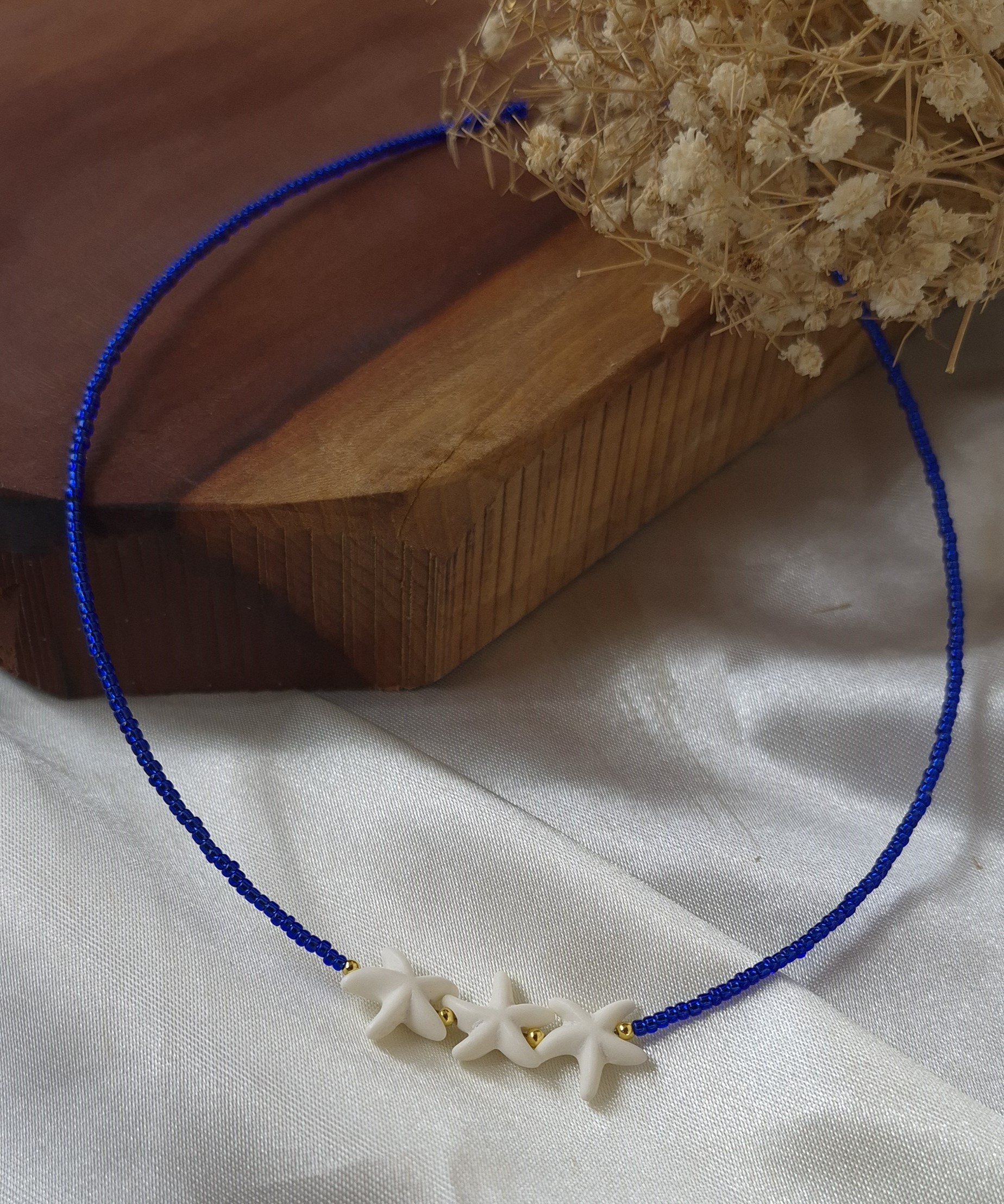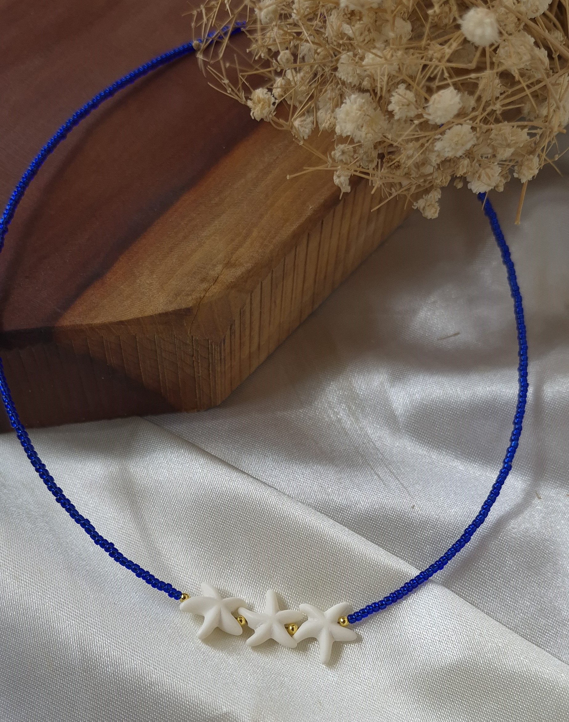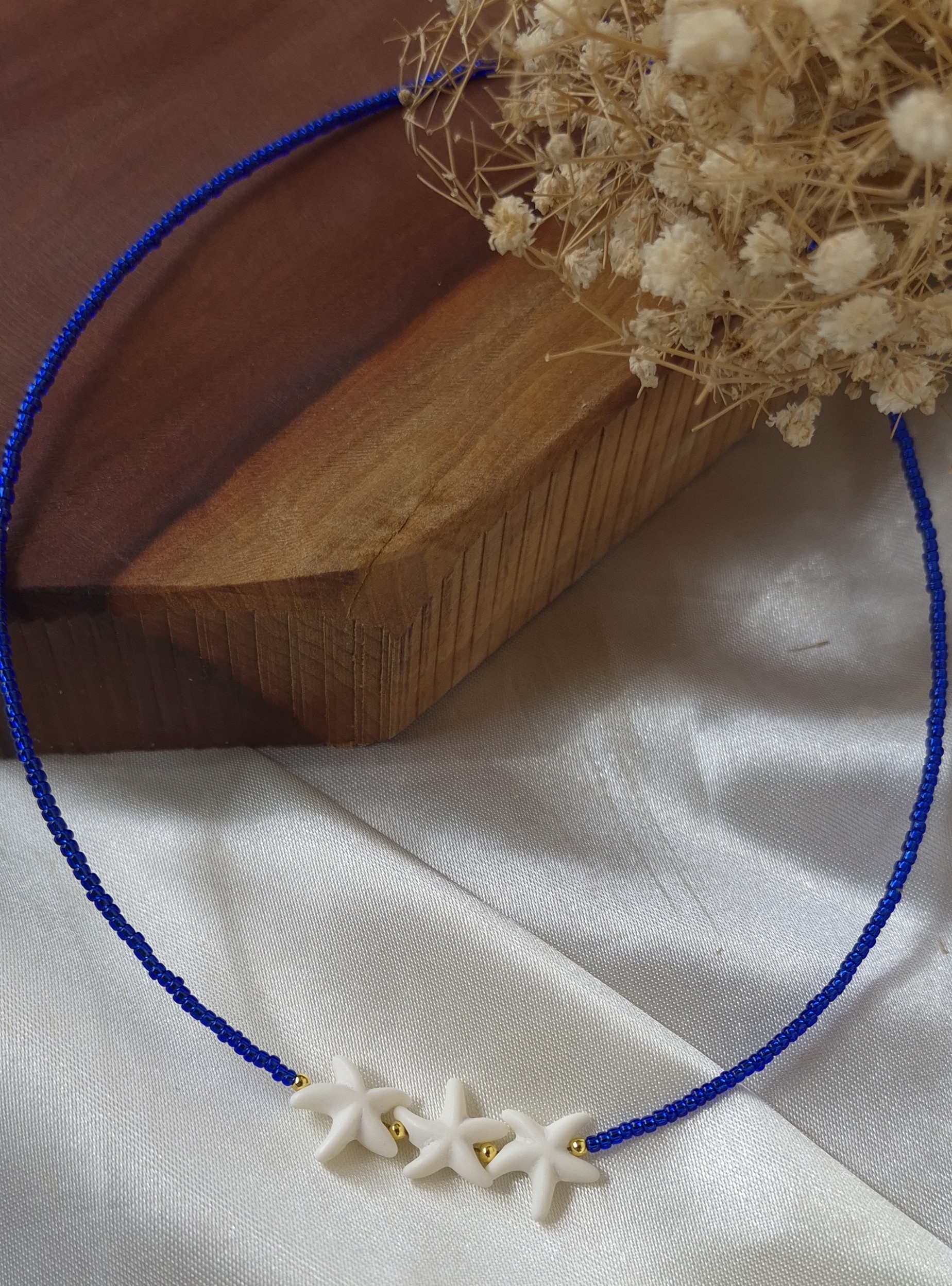 این گردنبند زنانه با ترکیب خاص منجوقهای آبی رنگ ثابت و پلاک طبیعی ستاره دریایی ، جلوهای متفاوت، شیک و الهامگرفته از زیبایی دریا دارد. طراحی خاص این مدل، حس آرامش و لطافت را به استایل شما اضافه میکند و انتخابی عالی برای استایلهای تابستانی و خاصپسند است.
