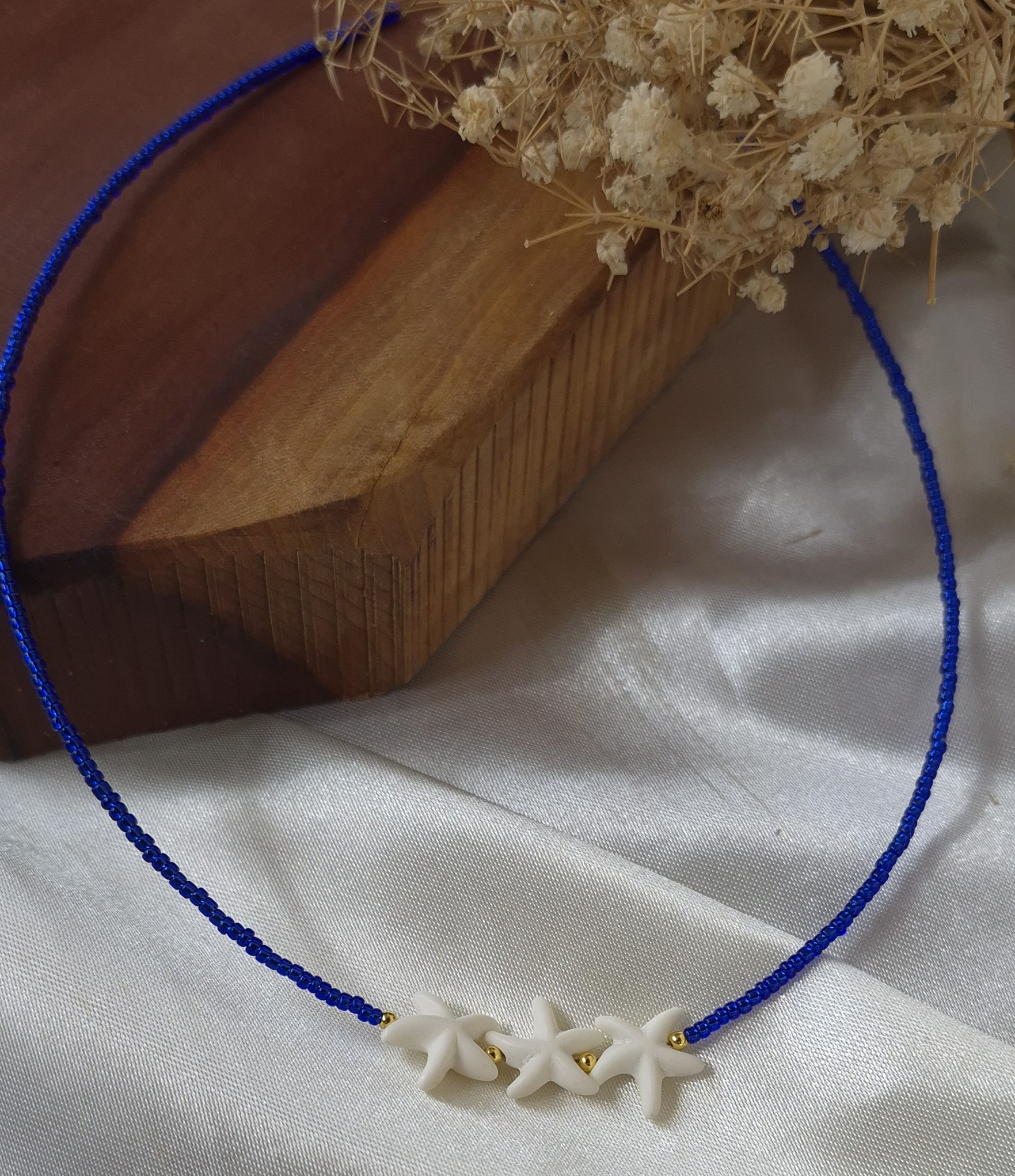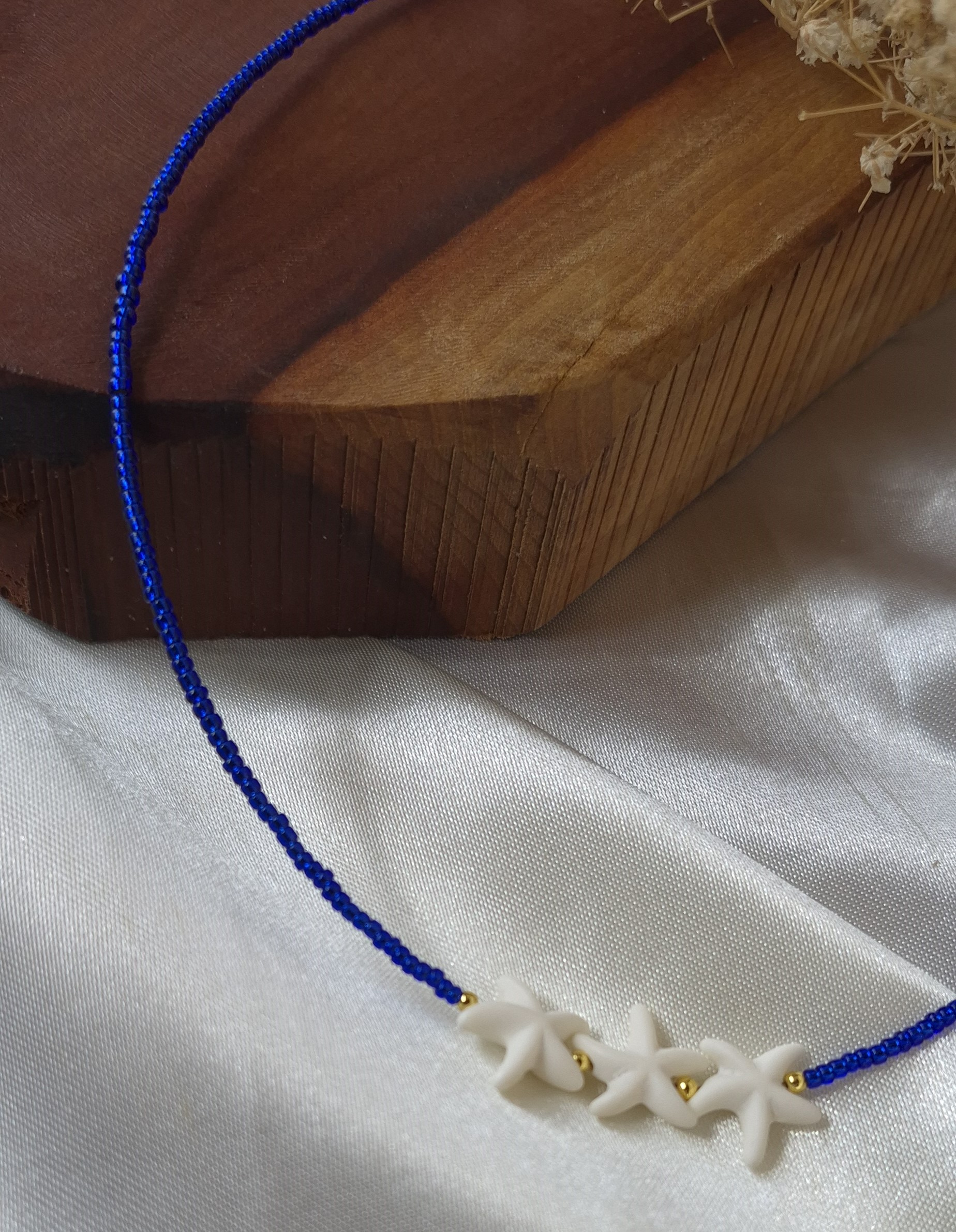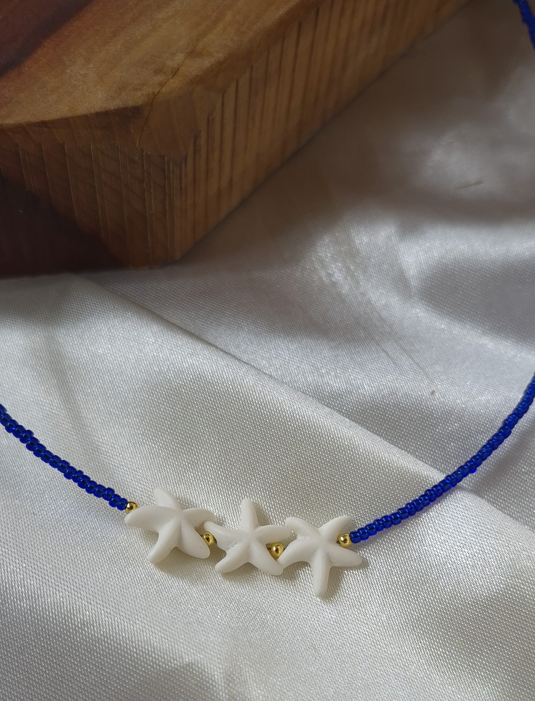 این گردنبند زنانه با ترکیب خاص منجوقهای آبی رنگ ثابت و پلاک طبیعی ستاره دریایی ، جلوهای متفاوت، شیک و الهامگرفته از زیبایی دریا دارد. طراحی خاص این مدل، حس آرامش و لطافت را به استایل شما اضافه میکند و انتخابی عالی برای استایلهای تابستانی و خاصپسند است.