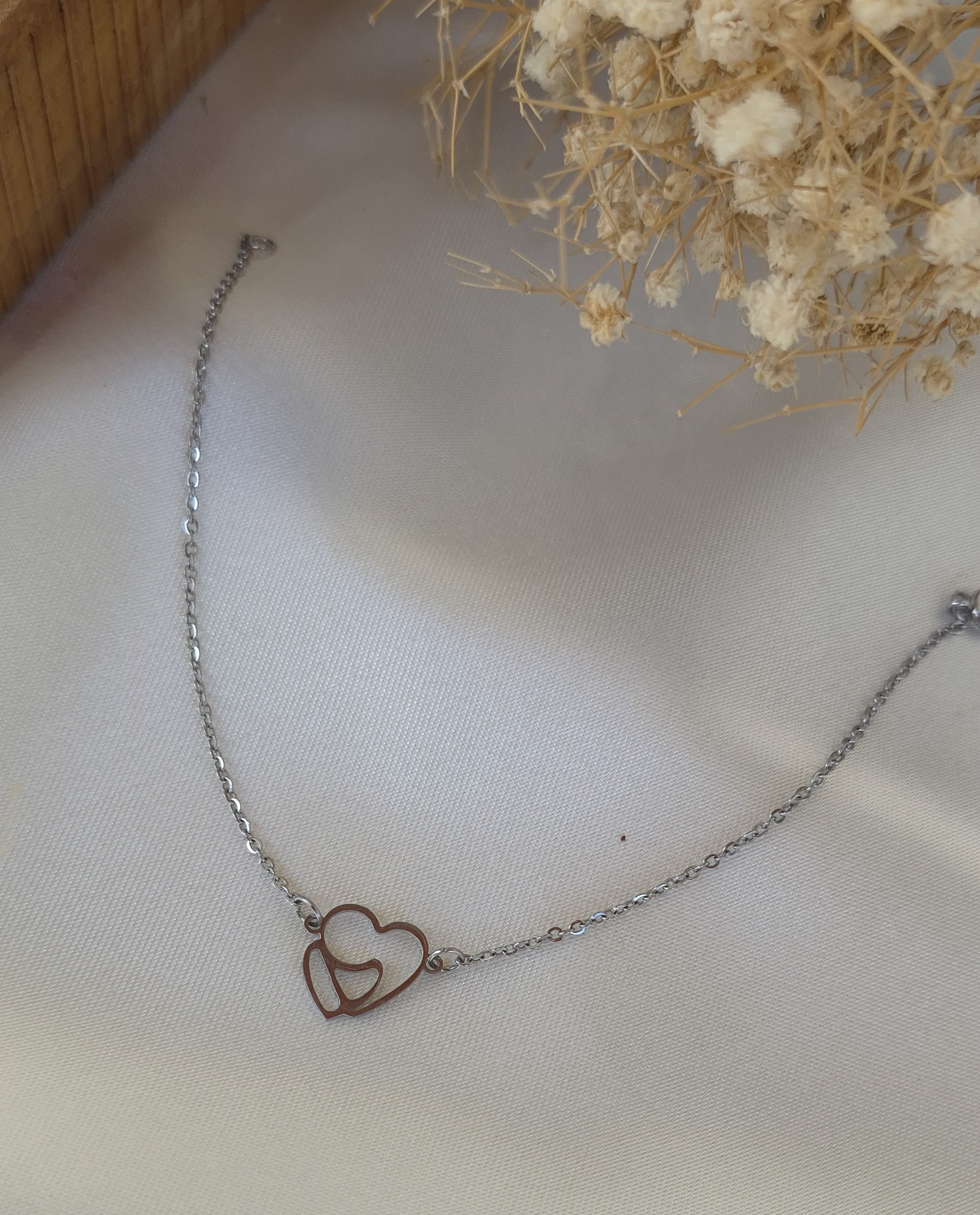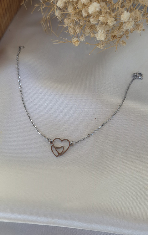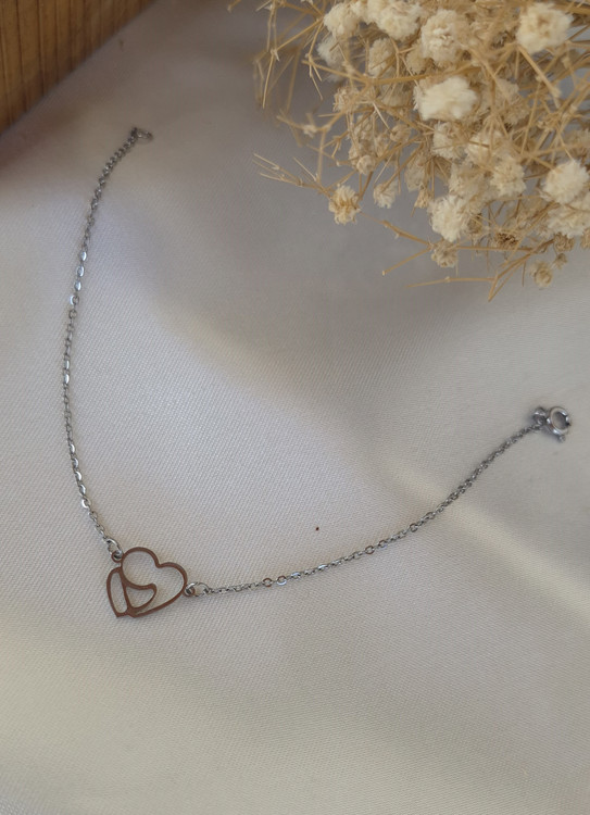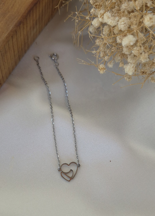 دستبند استیل نقره ای رنگ ثابت مدل قلب