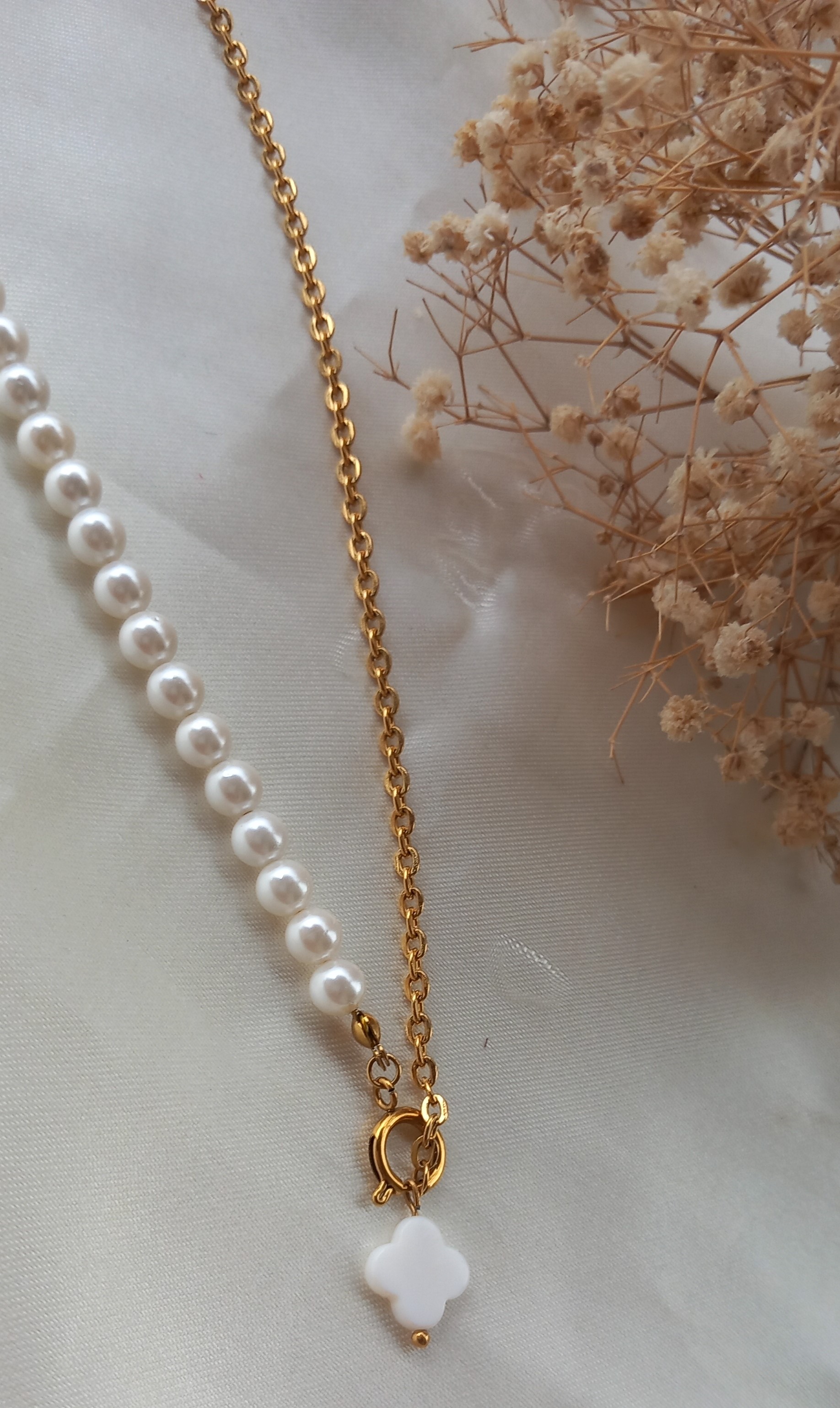 ترکیب شیک: مروارید شل + زنجیر استیل رنگ ثابت
