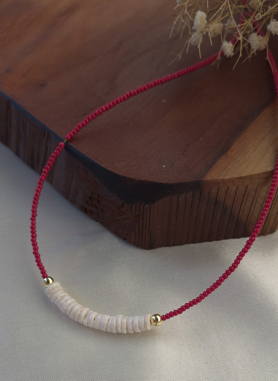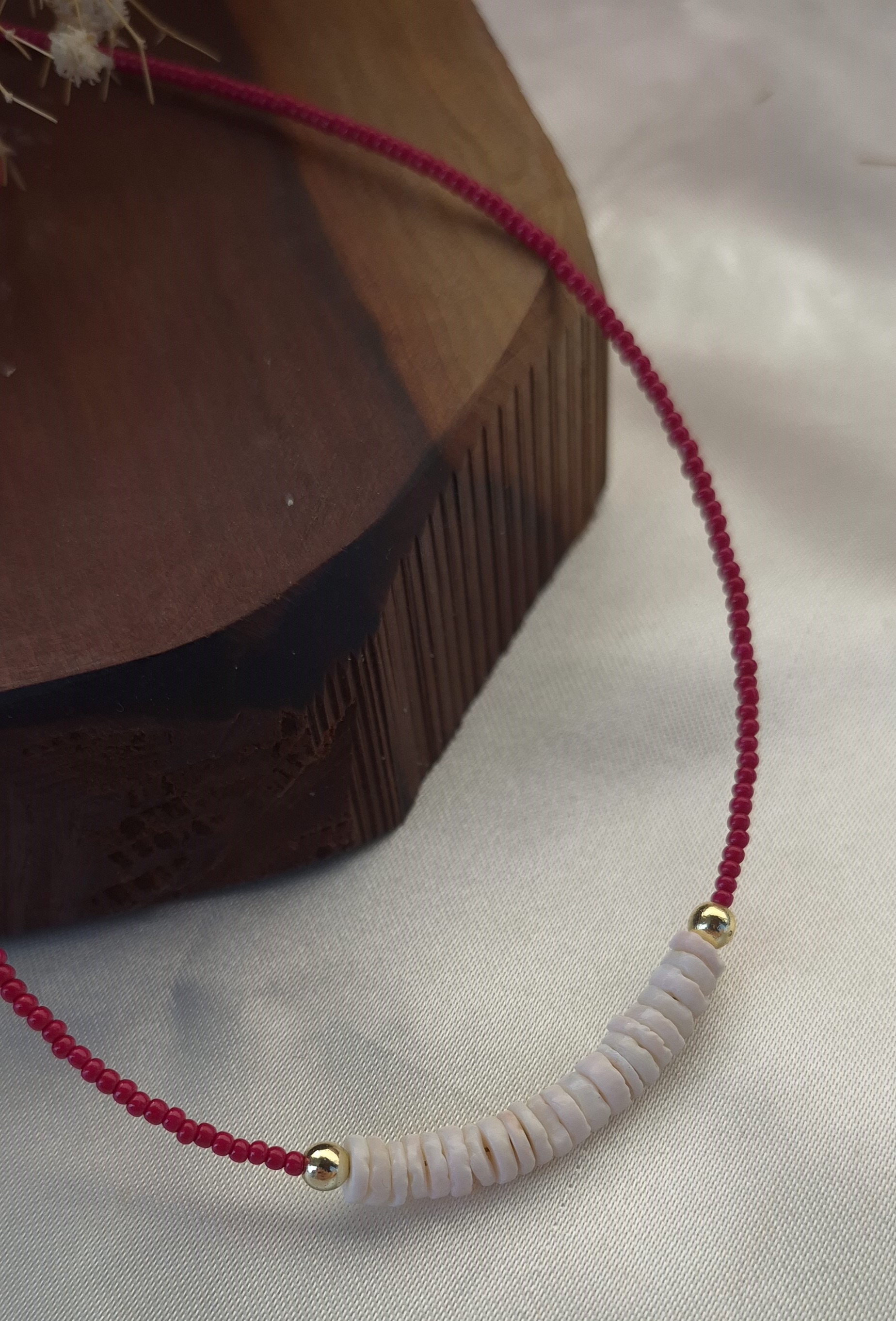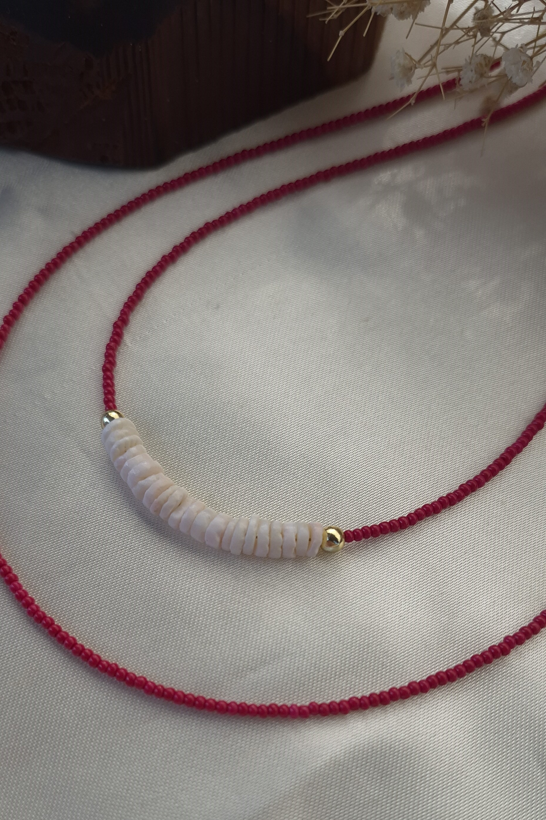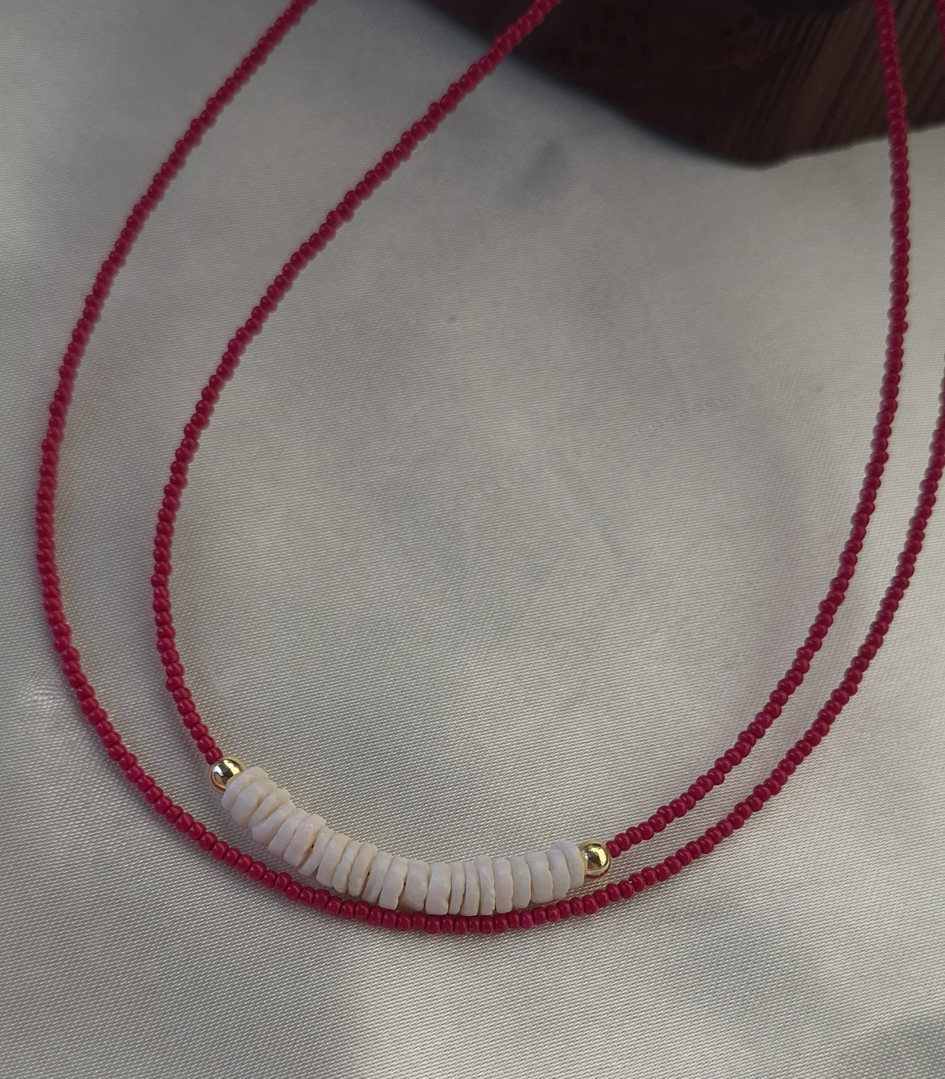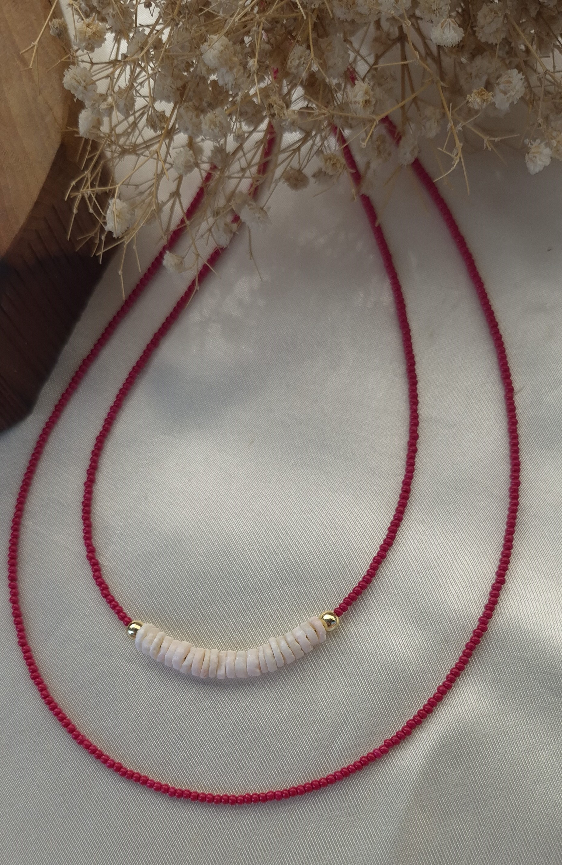 گردنبند زنانه منجوقی سرخابی با صدف های طبیعی صورتی