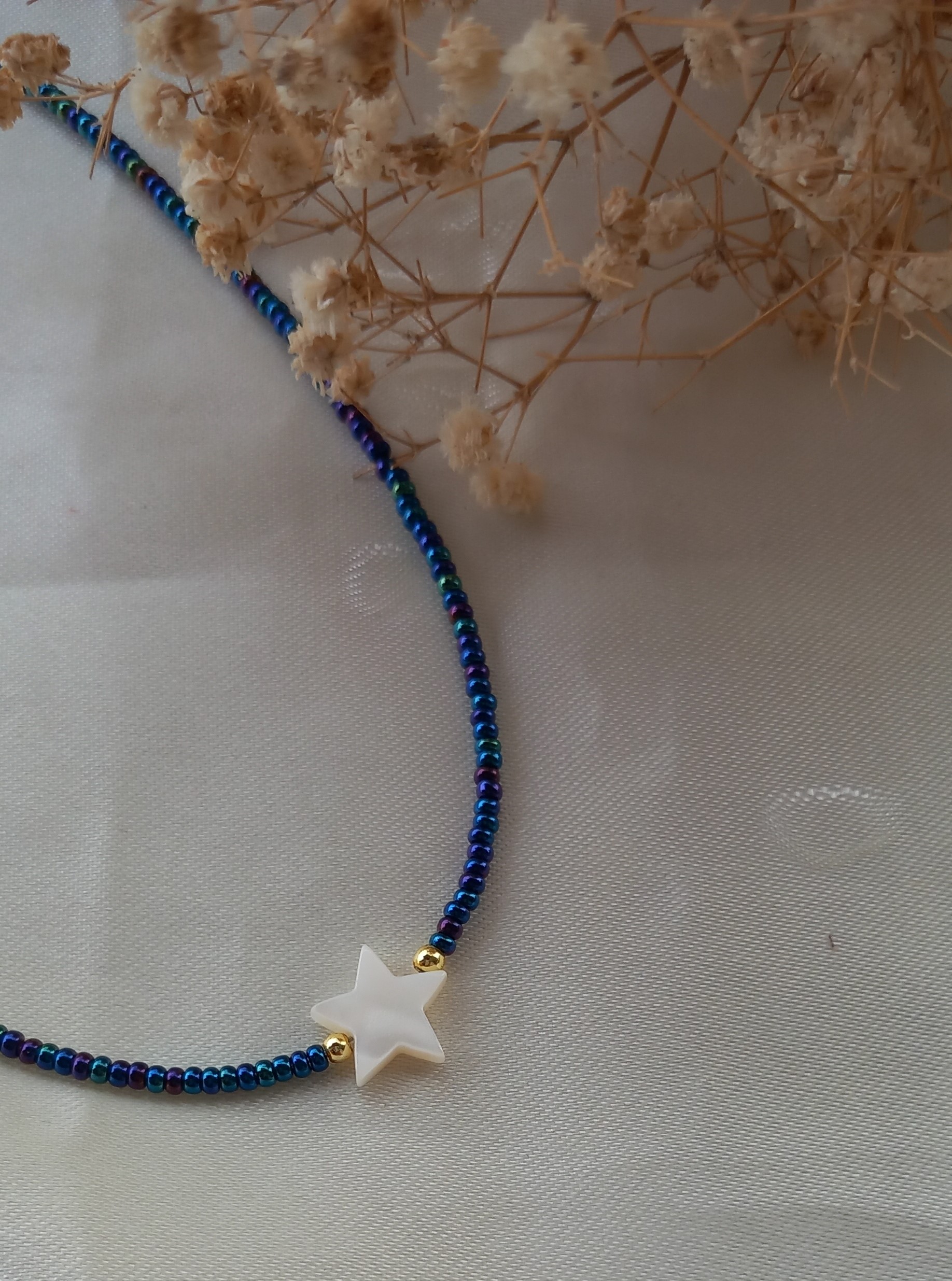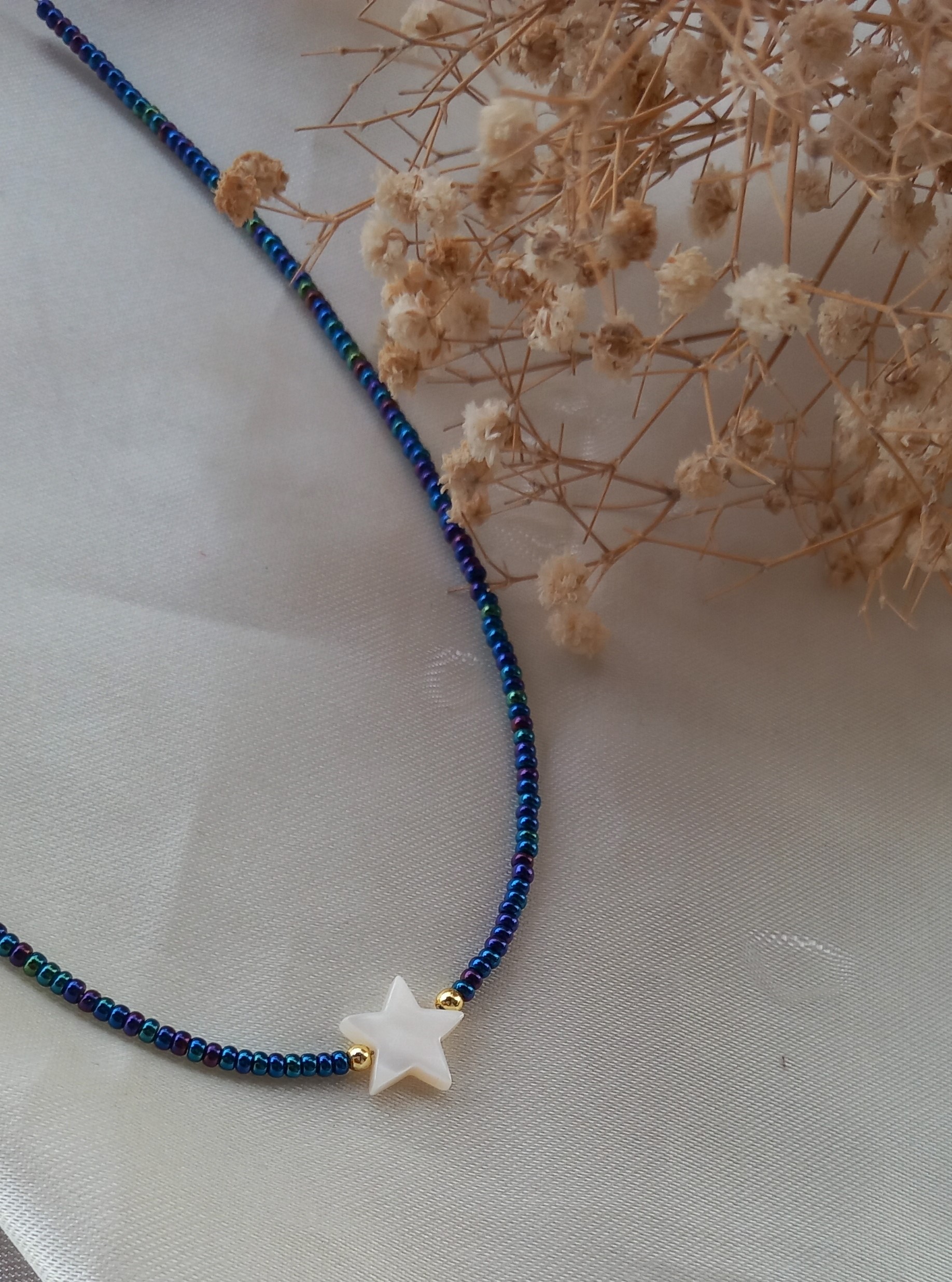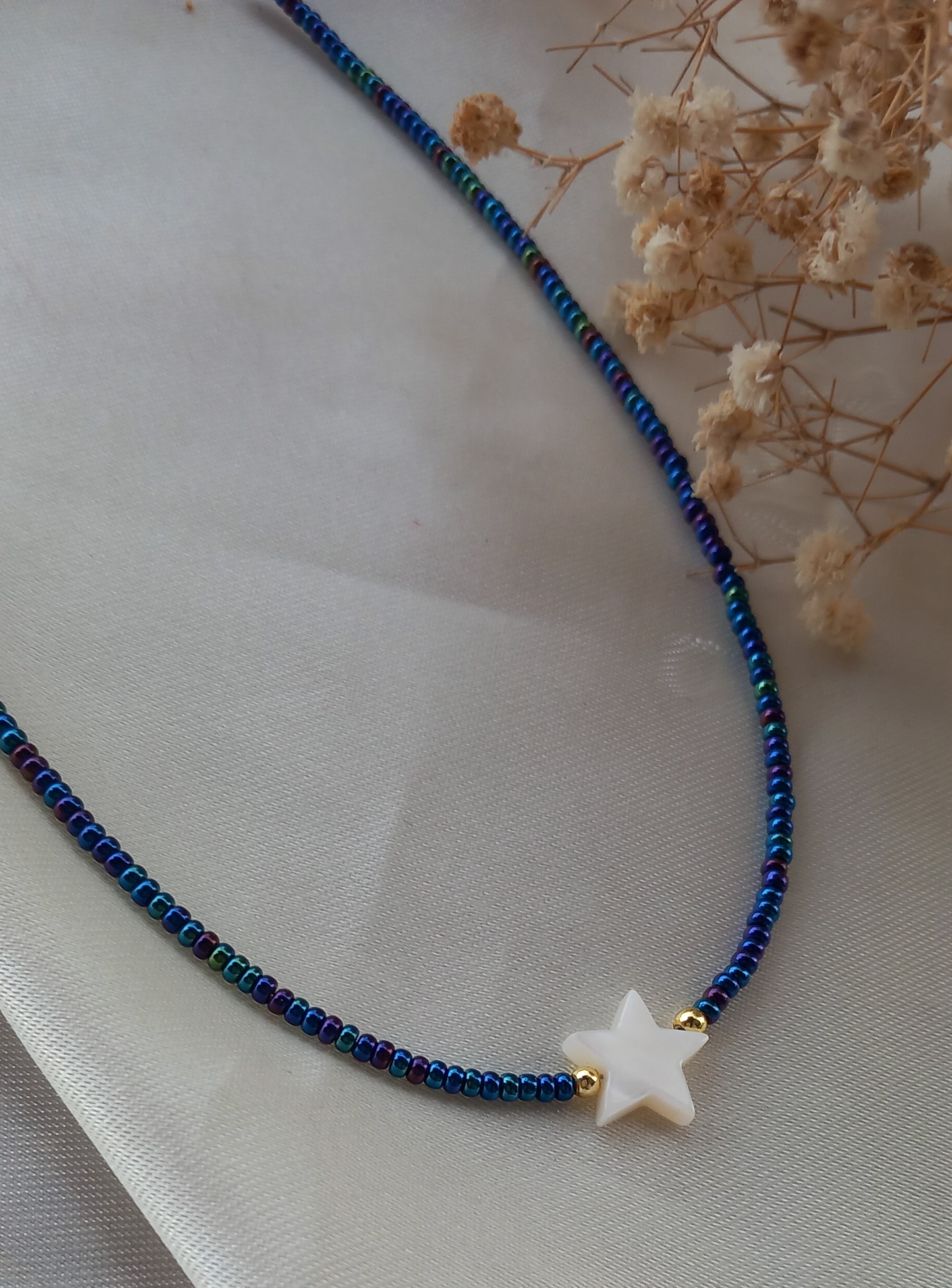 گردنبند زنانه منجوقی سرمهای رنگ ثابت مدل ستاره صدفی طبیعی