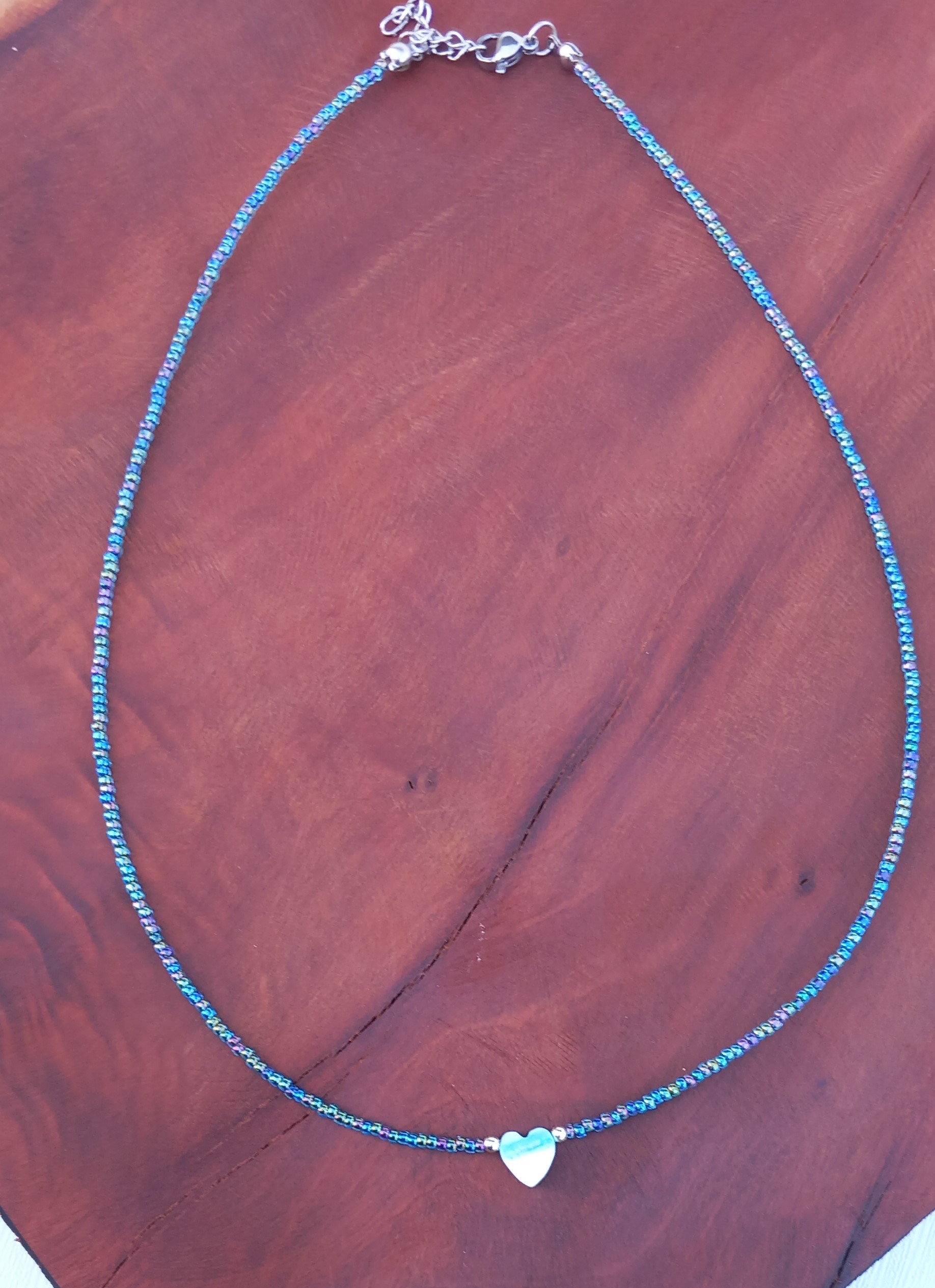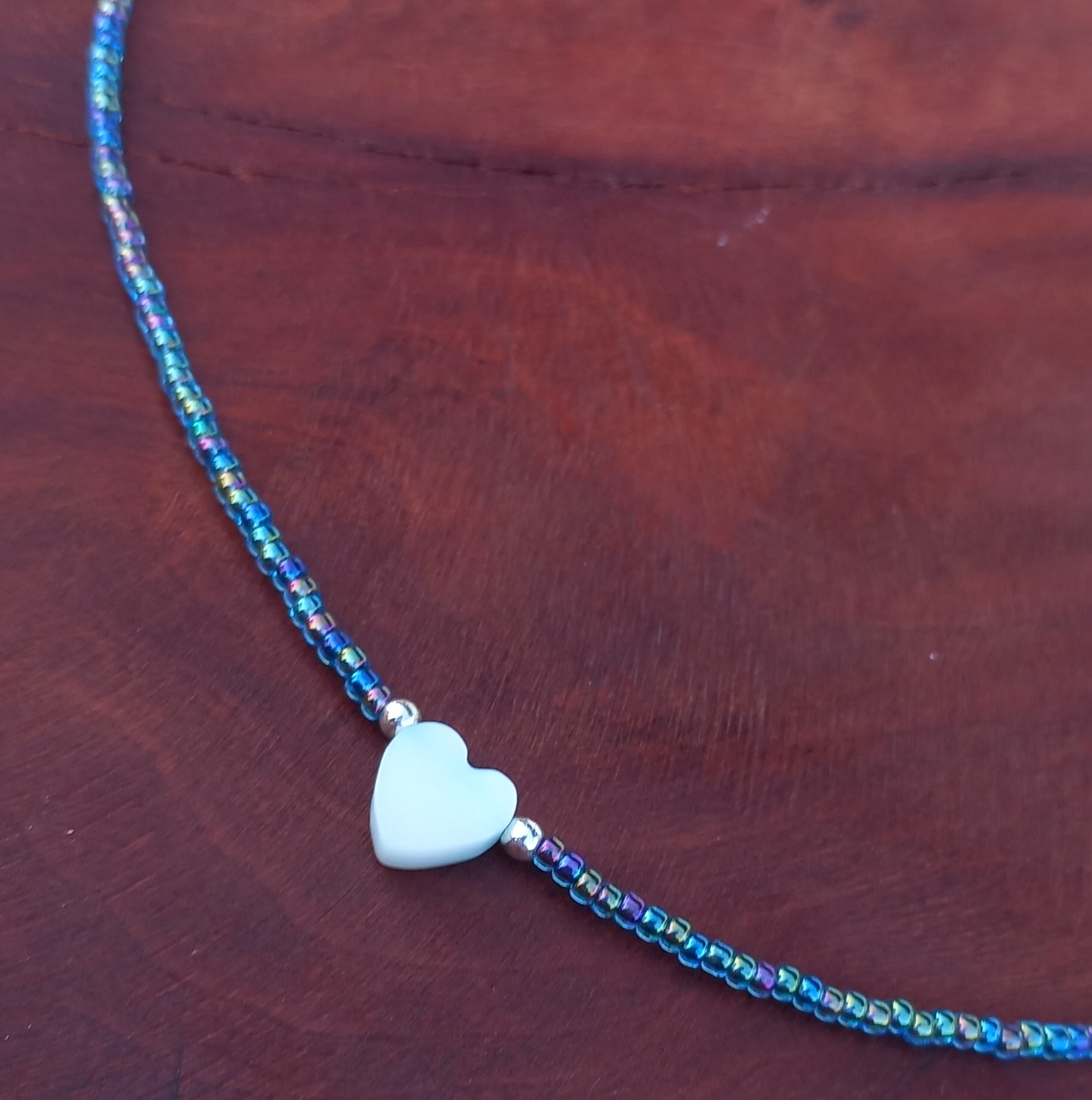 Blue Beaded Necklace with Natural Heart-Shaped Shell – Ocean Heart Collection