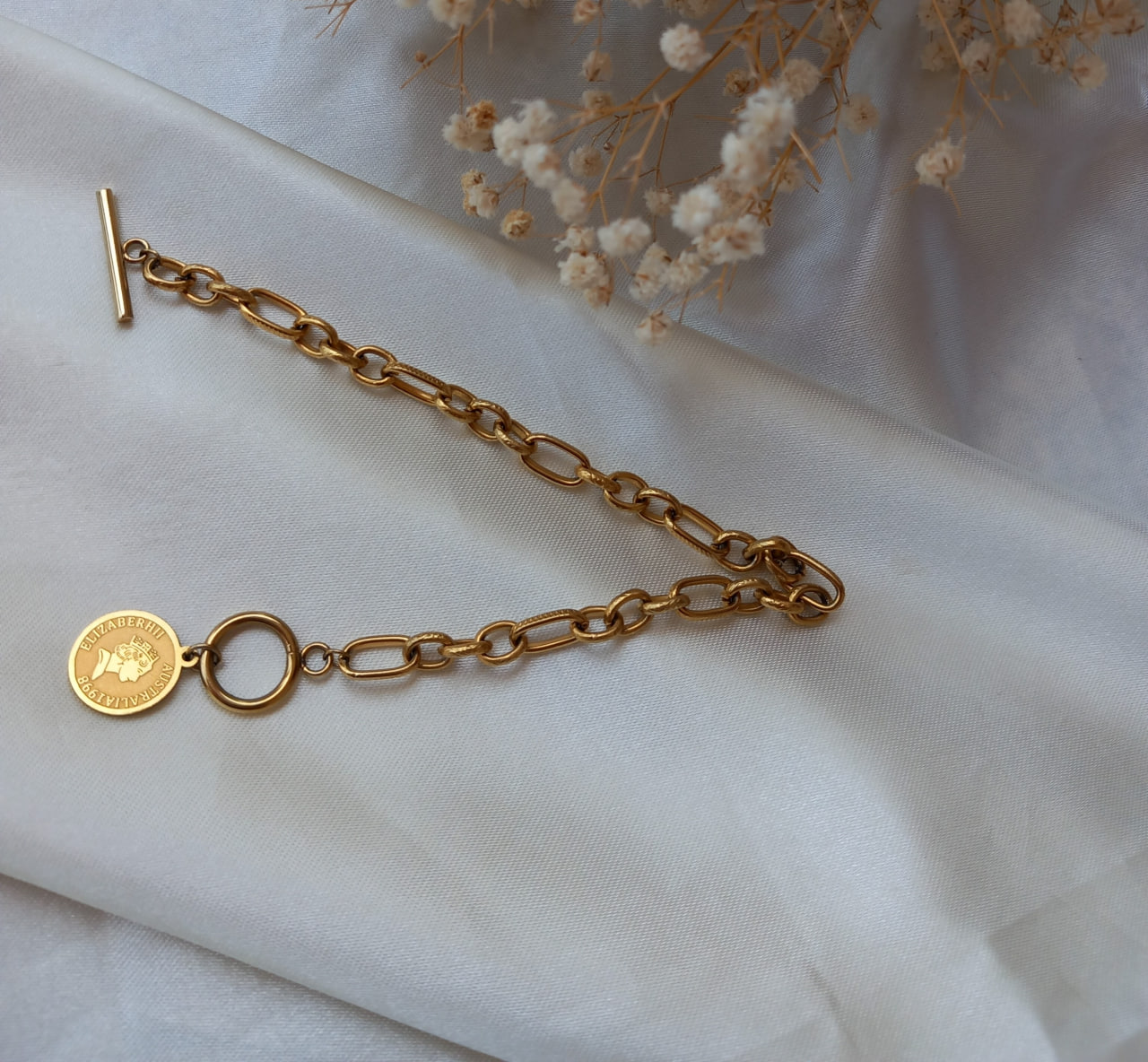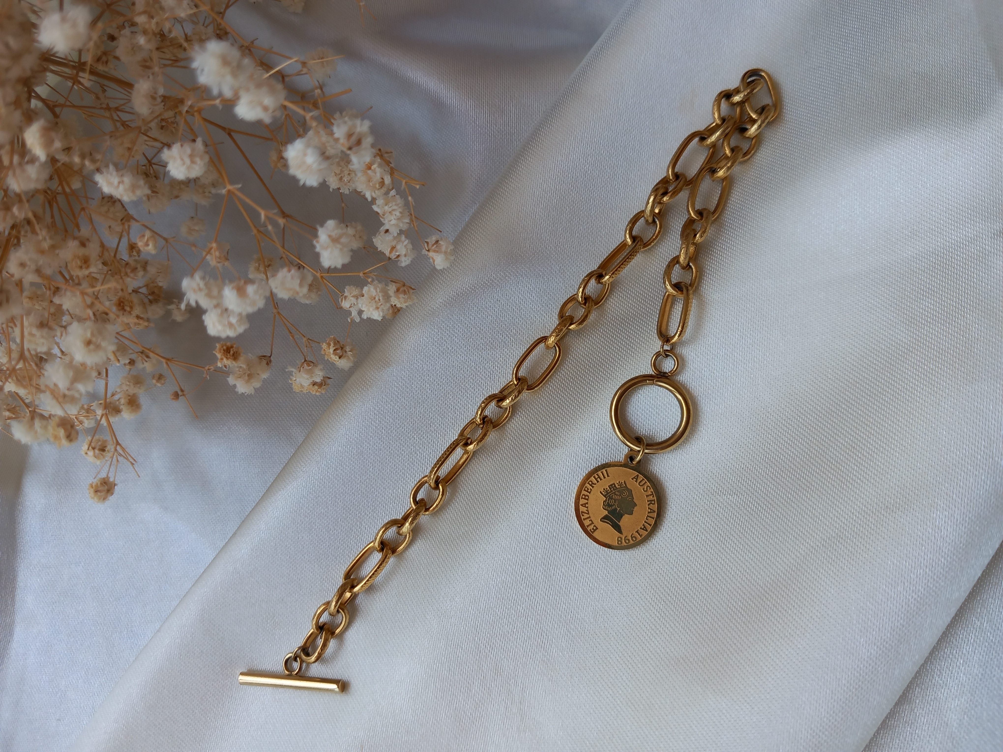 جنس استیل رنگ ثابت باعث دوام بالای دستبند شده و ظاهری مشابه طلا دارد، بدون نگرانی از تغییر رنگ. طراحی ظریف و جذاب این دستبند، آن را برای استفاده روزانه مناسب میسازد و همچنین میتواند هدیهای ماندگار و خاص برای عزیزانتان باشد. اگر به دنبال یک اکسسوری زنانه شیک، مقاوم و با ظاهر طلایی هستید، دستبند تیفانی با قفل T و آویز الیزابت گزینهای عالی خواهد بود.