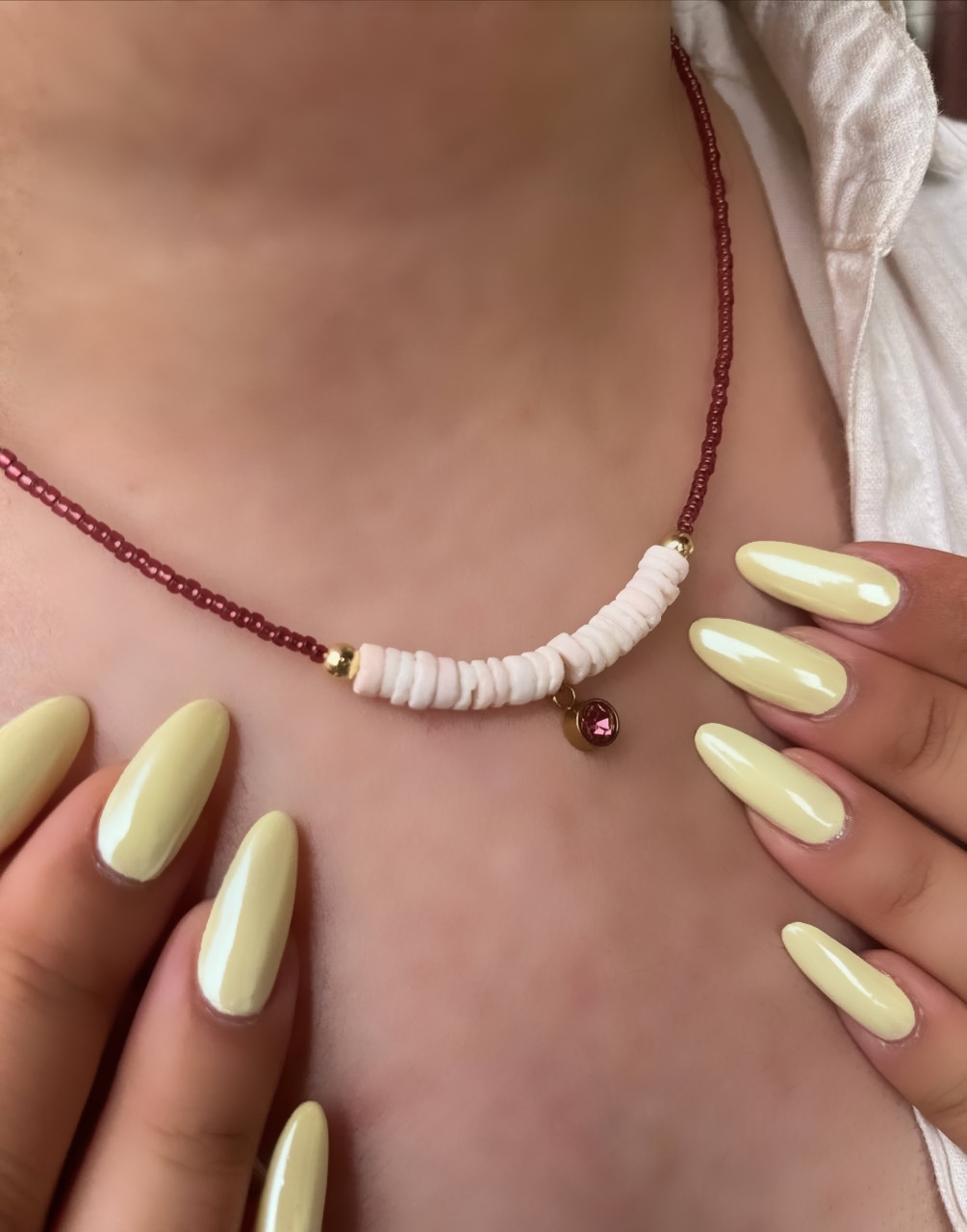 گردنبد زنانه کریستالی نباتی رنگ ثابت با صدف طبیعی طرح ونکلیف
