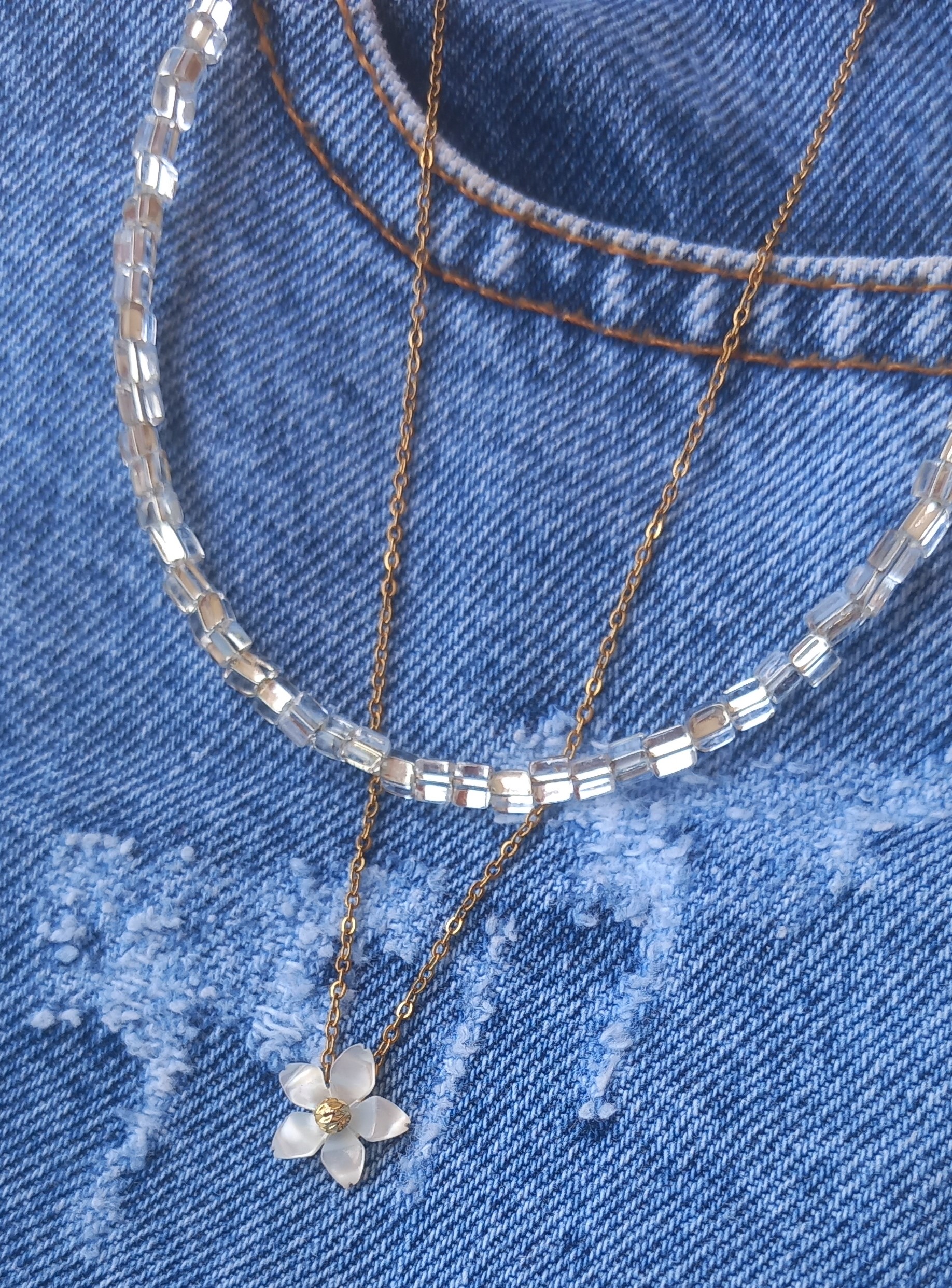 گردنبند زنانه منجوقی سفید با پلاک استیل