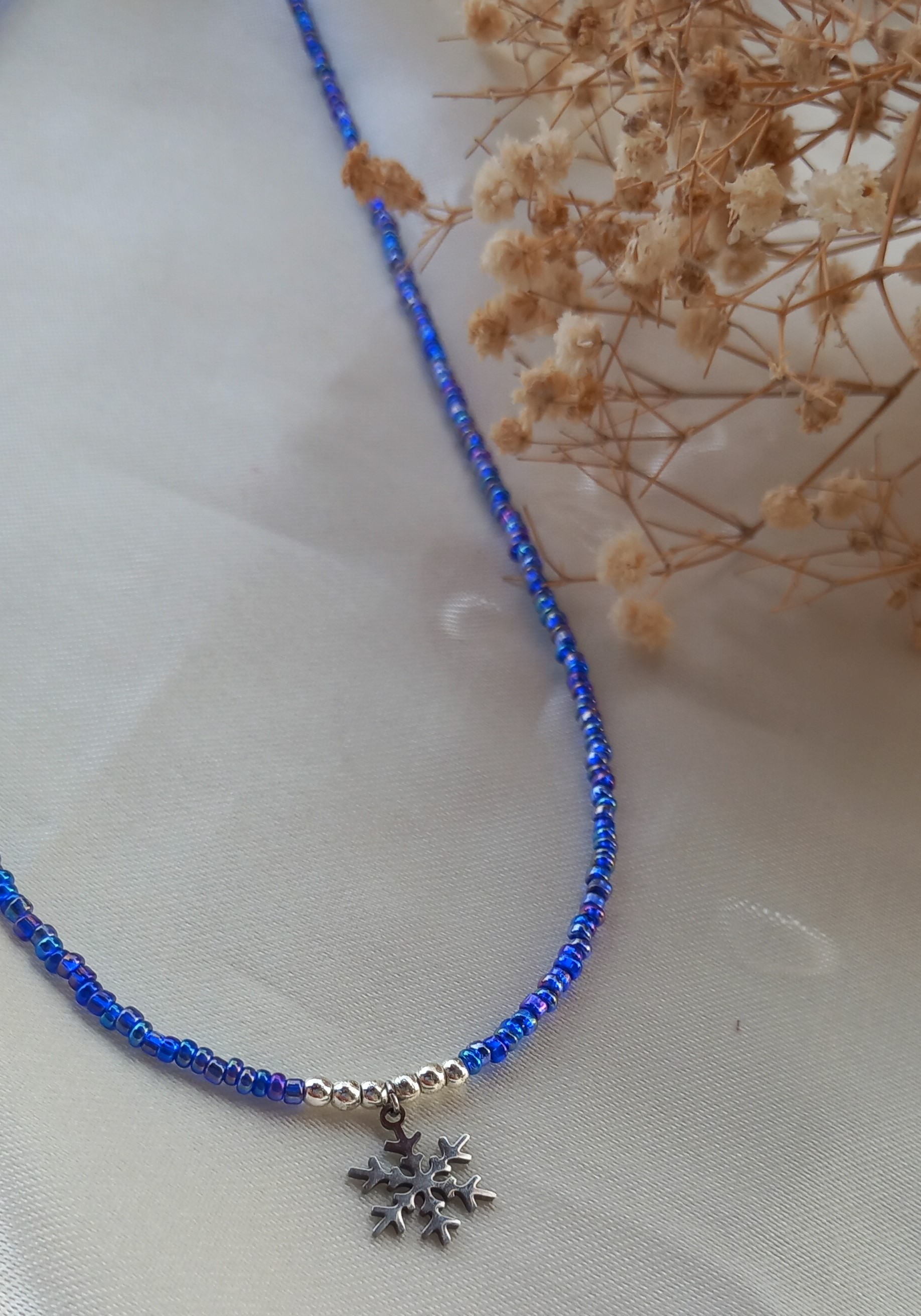 گردنبند برف با منجوق آبی
